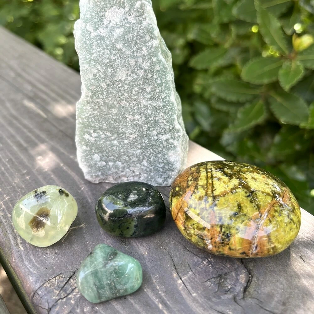 Net zoals de kleur roze, staan groene stenen in verbinding met het hart en het hartchakra. Daarnaast nodigen ze vaak ook uit tot verbinding met de natuur en de wijsheid hiervan. Groene edelstenen staan symbool voor groei, vernieuwing en overvloed. Ze hebben een kalmerend effect en kunnen worden gebruikt om geestelijke groei en spirituele vrijheid te stimuleren. Daarnaast helpen ze om je hart te openen en liefde te ontvangen en deze vrij te laten stromen.