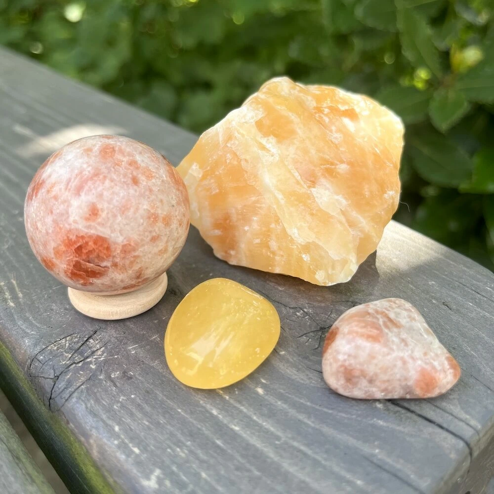 Voorbeelden van oranje edelstenen zijn oranje carneool, oranje calciet en zonnesteen.