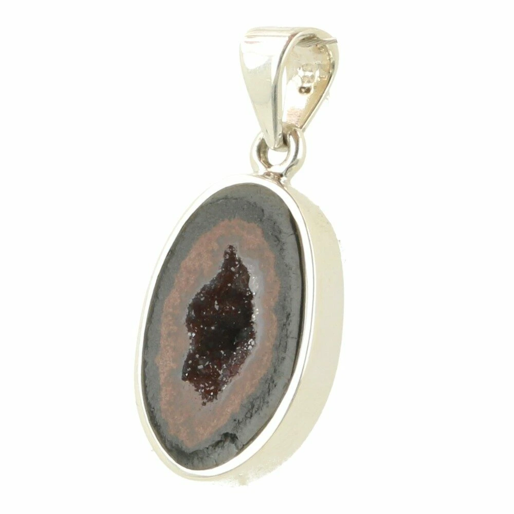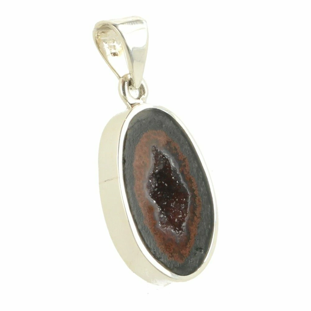 Mooie donkere agaat geode hanger in zilver ‘nr2’. De agaat geode is subtiel gevat in juwelierskwaliteit 925 sterling zilver. De afmeting van de agaat steen in de hanger is ongeveer 20mm hoog en 12mm breed. Je ontvangt de agaat geode hanger in zilver van de foto. Een prachtige donkere agaat met glinsterende holte met amethist.