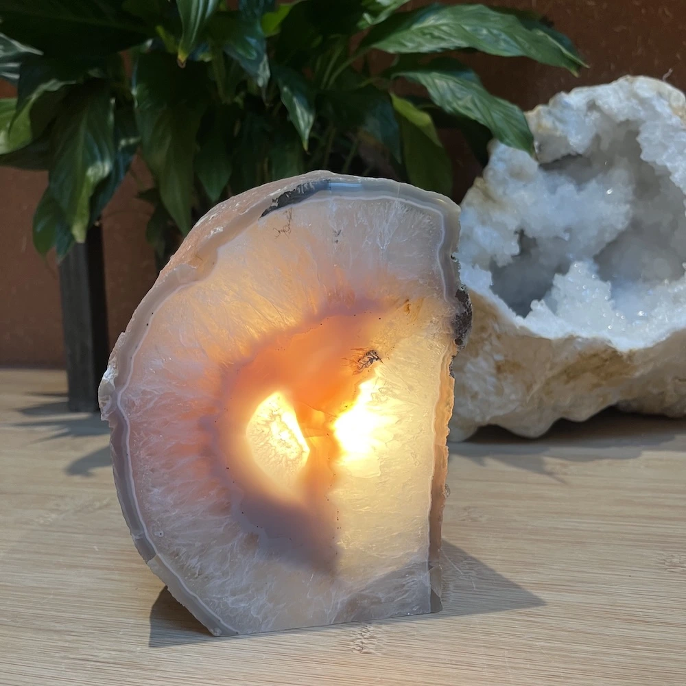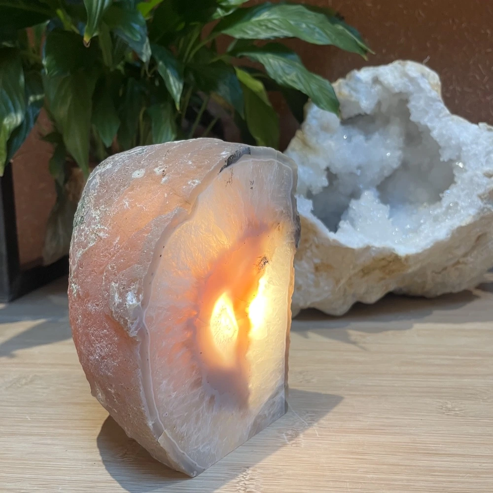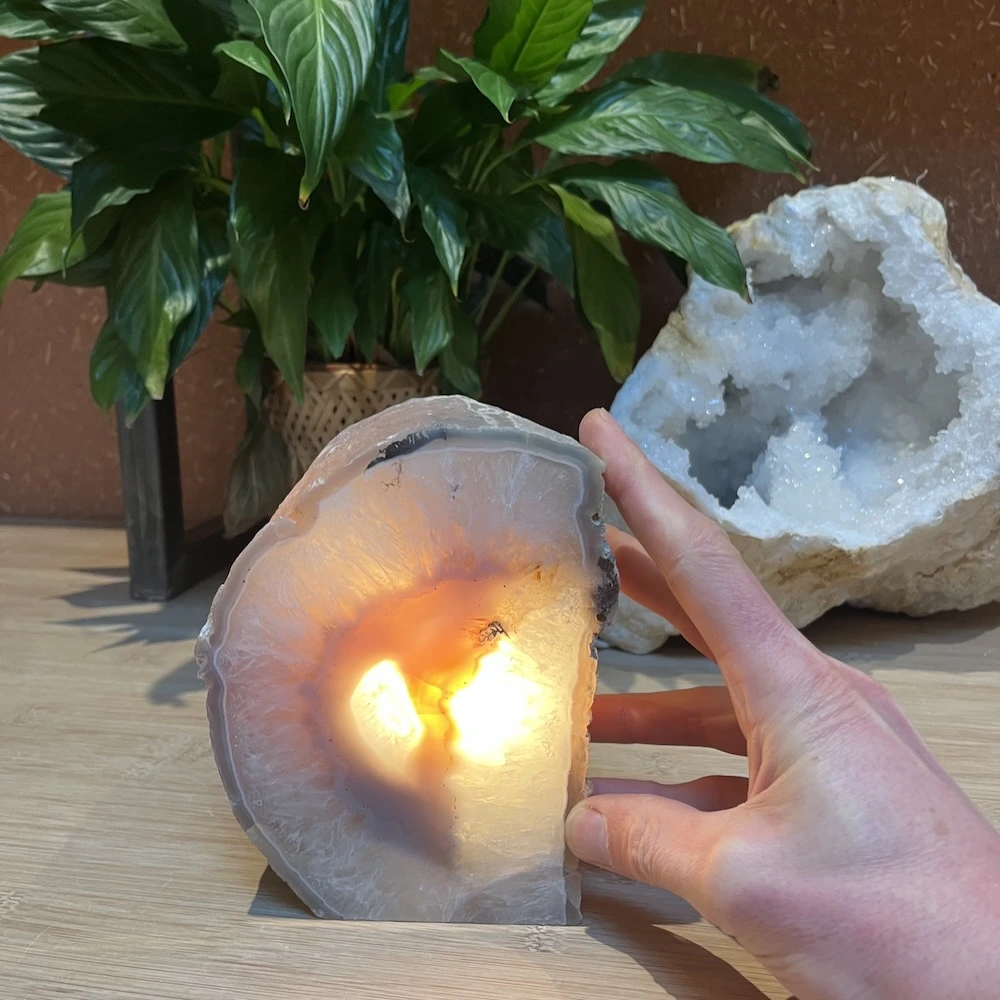 Agaat geodes (holle stenen) of grotere stukken agaat zijn perfect om de energie in een ruimte helder en zacht te maken. De frisse en zachte energie helpt om lekker bij jezelf te blijven en alles wat je niet dient los te laten. Een subtiele maar belangrijke factor om je lekker in je vel te voelen in iedere ruimte.