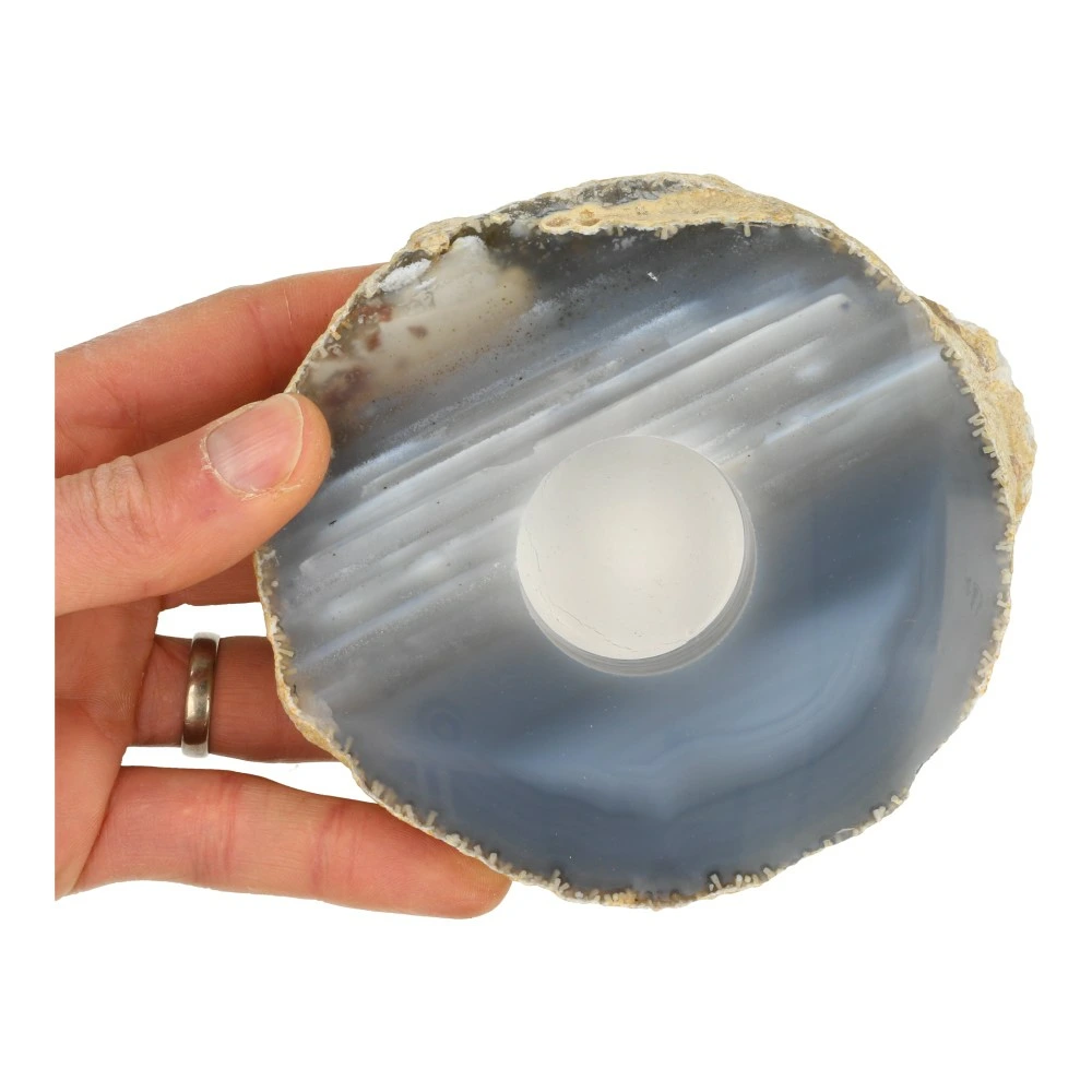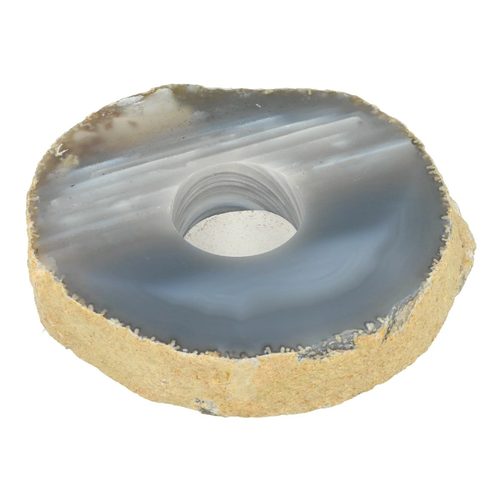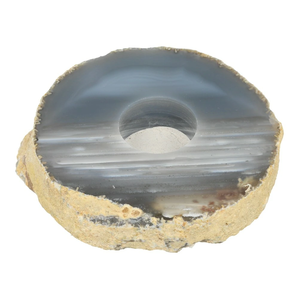 Mooie gepolijste agaat waxinelichthouder uit een agaat schijf uit Brazilië met holte voor een waxinelichtje. Een echte sfeermaker! Je ontvangt de agaat waxinelichthouder van de foto. De afmeting is ongeveer 14 x 12,3cm en 3cm hoog, puur natuur! De ruimte voor het waxinelichtje heeft een diameter van 4cm.