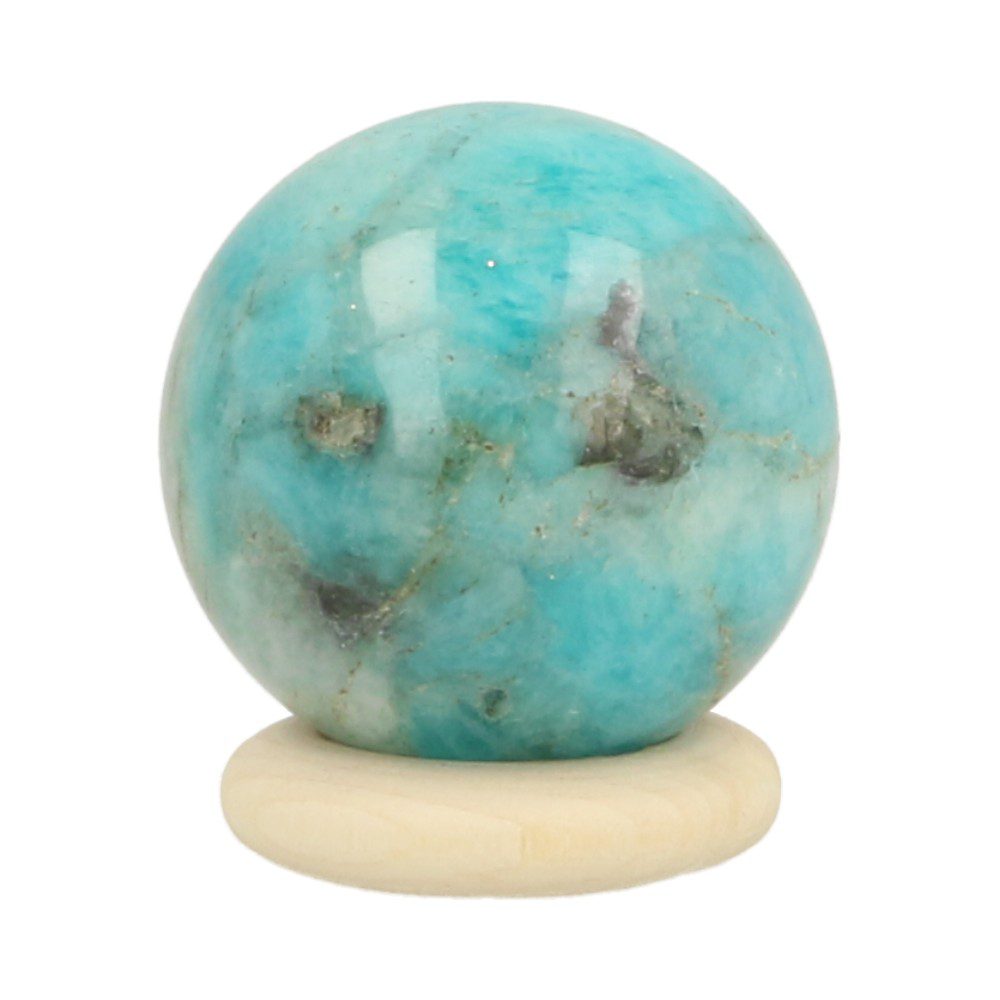 Heerlijk frisgroene amazoniet bol met een diameter van ca 25mm en houten ringetje. Je ontvangt een soortgelijke amazoniet bol als op de foto. Naast amazoniet bevatten deze bolletjes gedeeltelijk ook kwarts, rookkwarts en mica.