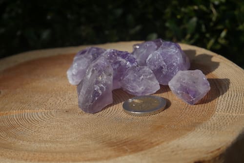 Kleine stukjes ruwe amethist, voornamelijk vanuit gebroken vanuit ongekristalliseerde amethist. Deze ruwe stukjes zijn ideaal om bijvoorbeeld in een ruimte te verspreiden, bij je te dragen of water te vitaliseren. De afmeting is ongeveer 3-5cm lang.