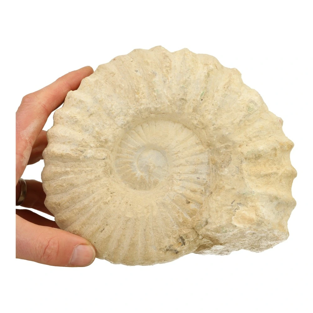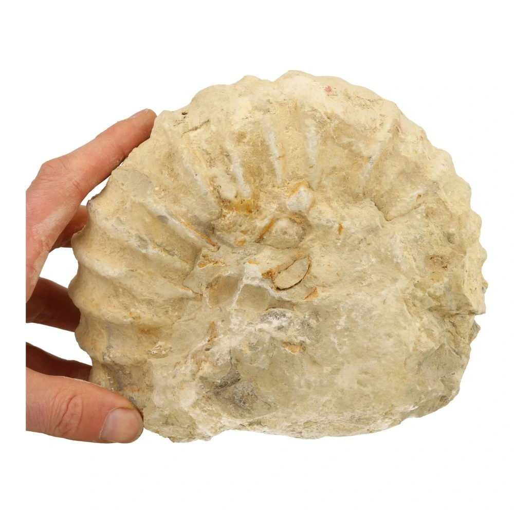 Groot ammoniet fossiel van ongeveer 18cm breed, 16cm hoog en 9cm diep. Dit fraaie fossiel is aan de voorzijde en buitenrand fraai geprepareerd, de achterkant is nog in steen en komt uit Marokko. Je ontvangt de ammoniet van de foto. Deze ammoniet kan zelfstandig rechtop staan.