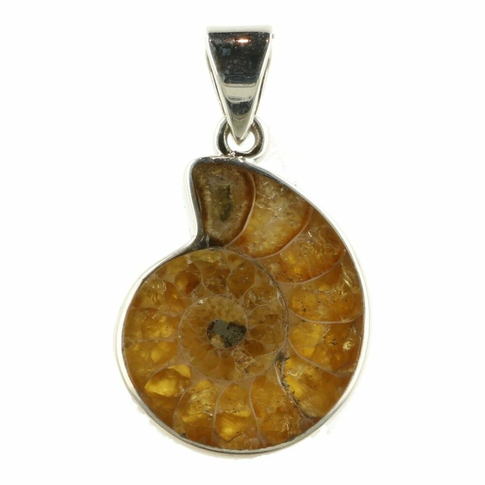 Fraaie fossiele ammoniet hanger in zilver ‘nr3’. Deze mooie ammoniet is in juwelierskwaliteit 925 sterling gezet. De afmeting van de ammoniet in de hanger is ongeveer 24mm hoog en 19mm breed. Je ontvangt de ammoniet hanger in zilver van de foto.