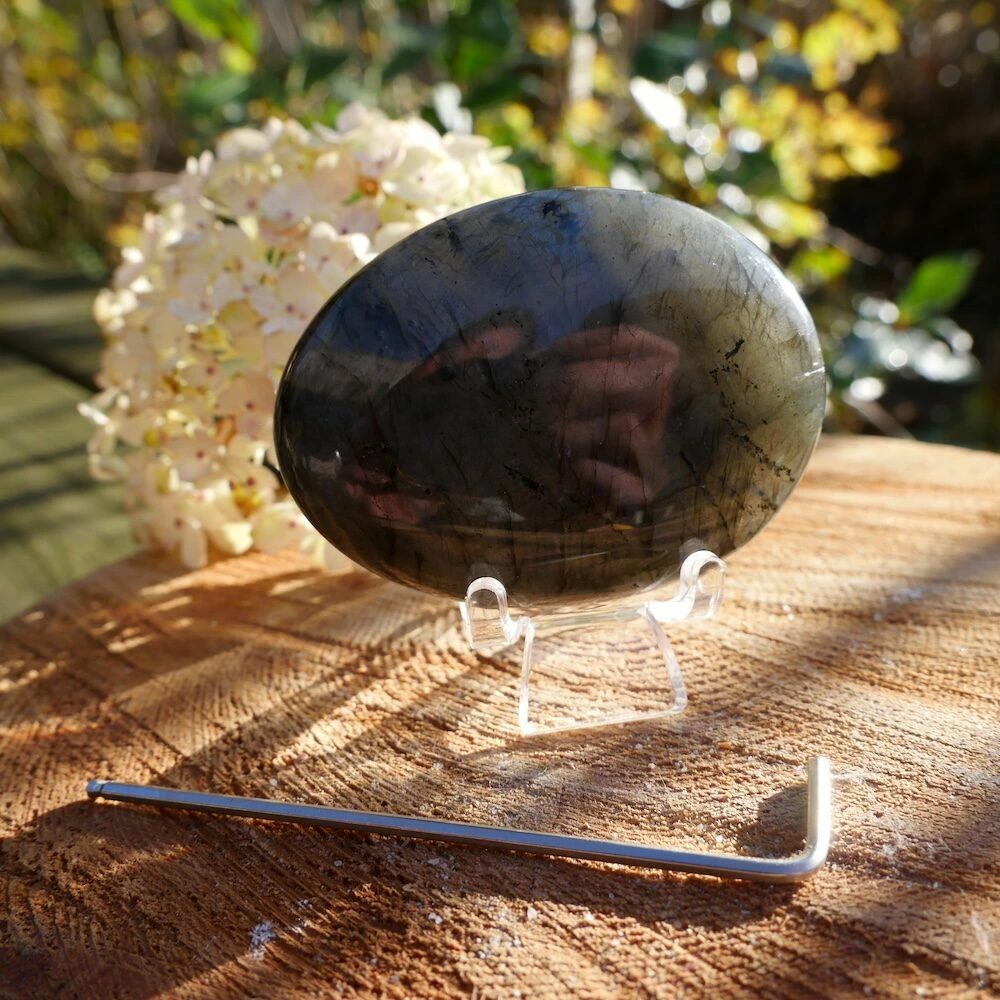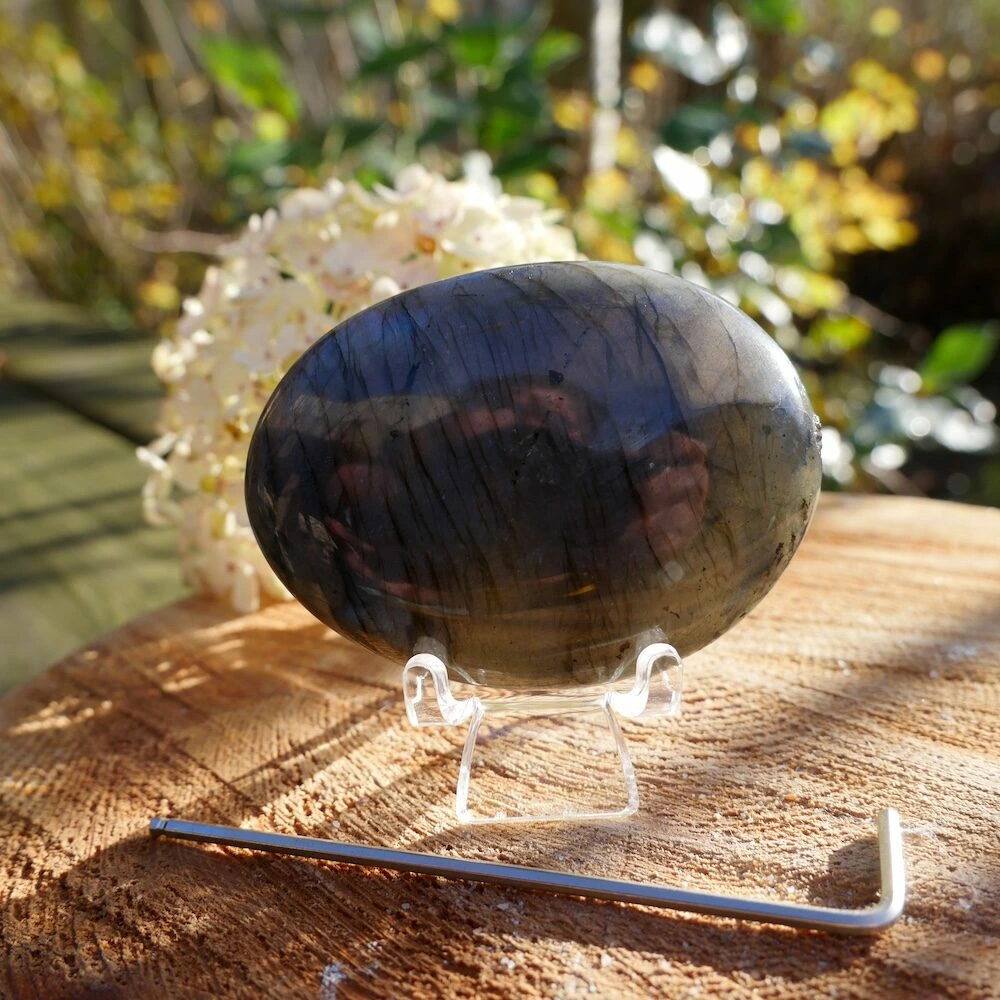 Daardoor is labradoriet een krachtige beschermer. Het helpt je bij jezelf te blijven en verbindingen met anderen zuiver te houden. Zuivert en herstelt je innerlijke verbinding met je pure zelf, activeert je innerlijke oog en is een steen van kracht en eenheid achter de ogenschijnlijke dualiteit.