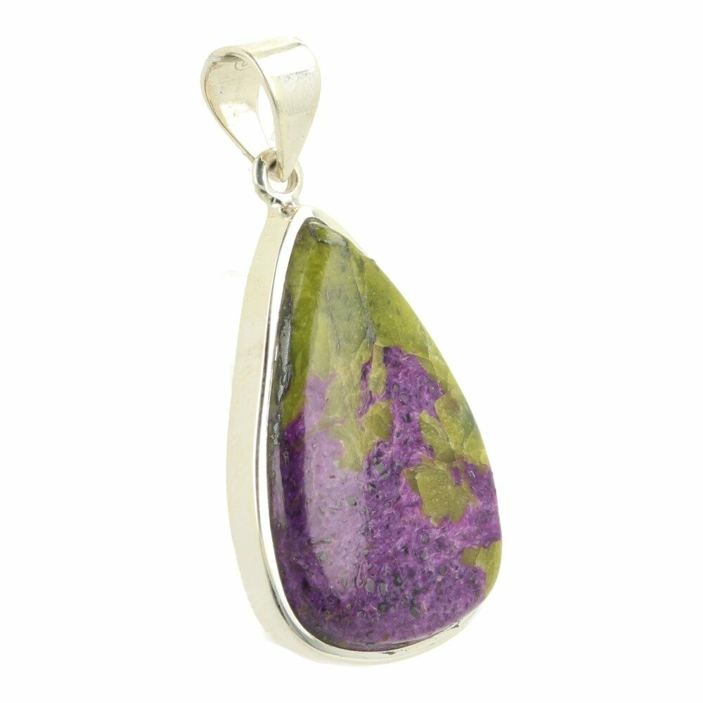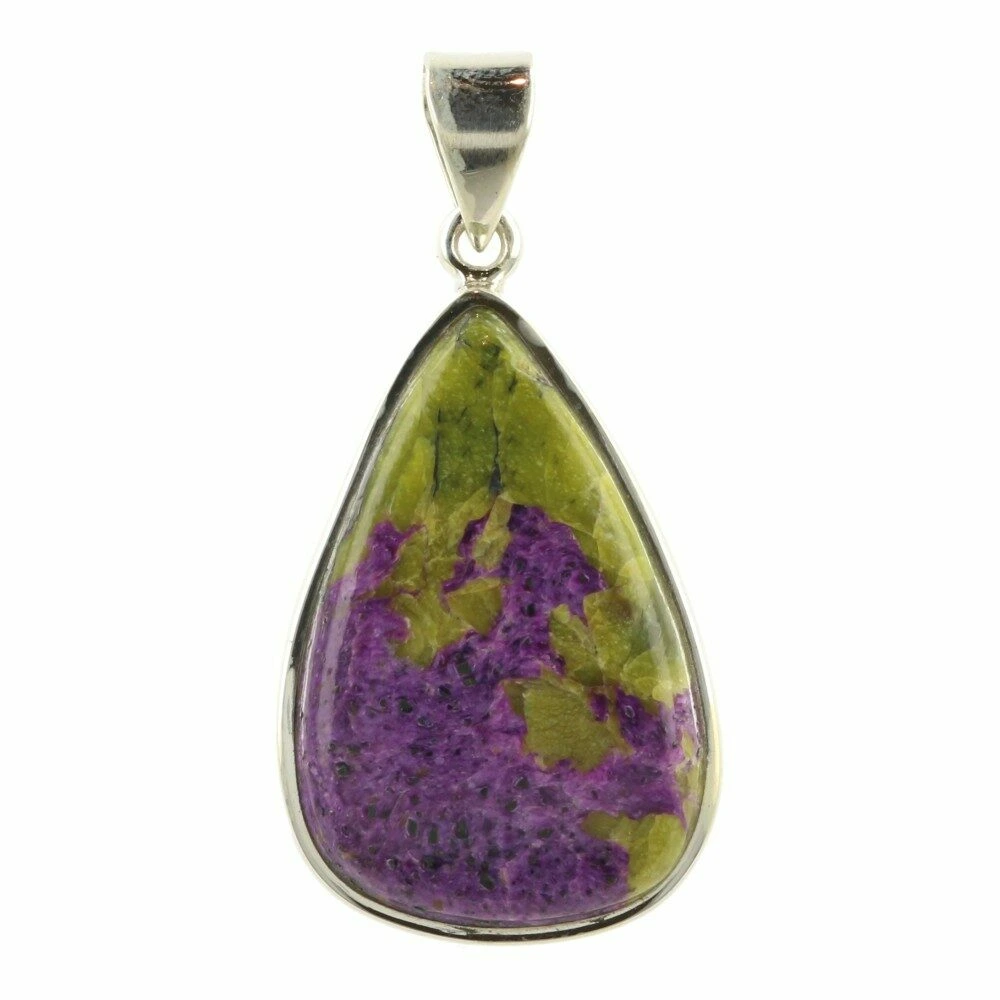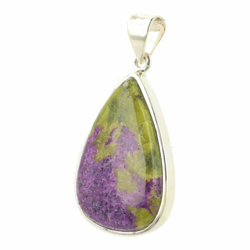Mooie groen met paarse atlantisiet hanger ‘nr3’, welke is gevat in juwelierskwaliteit 925 sterling zilver. Atlantisiet is een combinatie van serpentijn en stichtiet uit Australië. Je ontvangt de atlantisiet hanger in zilver van de foto. De afmeting van de steen in de hanger is ongeveer 29mm hoog en 19mm breed.