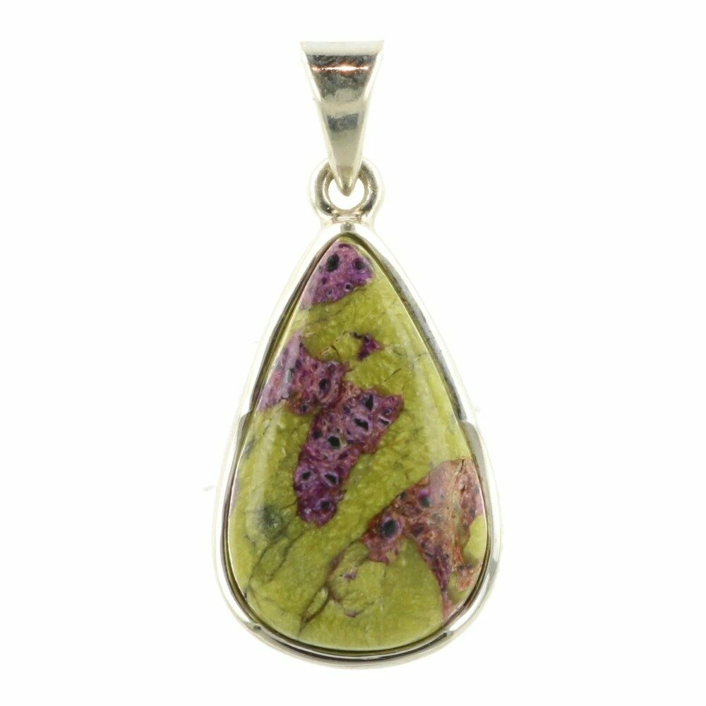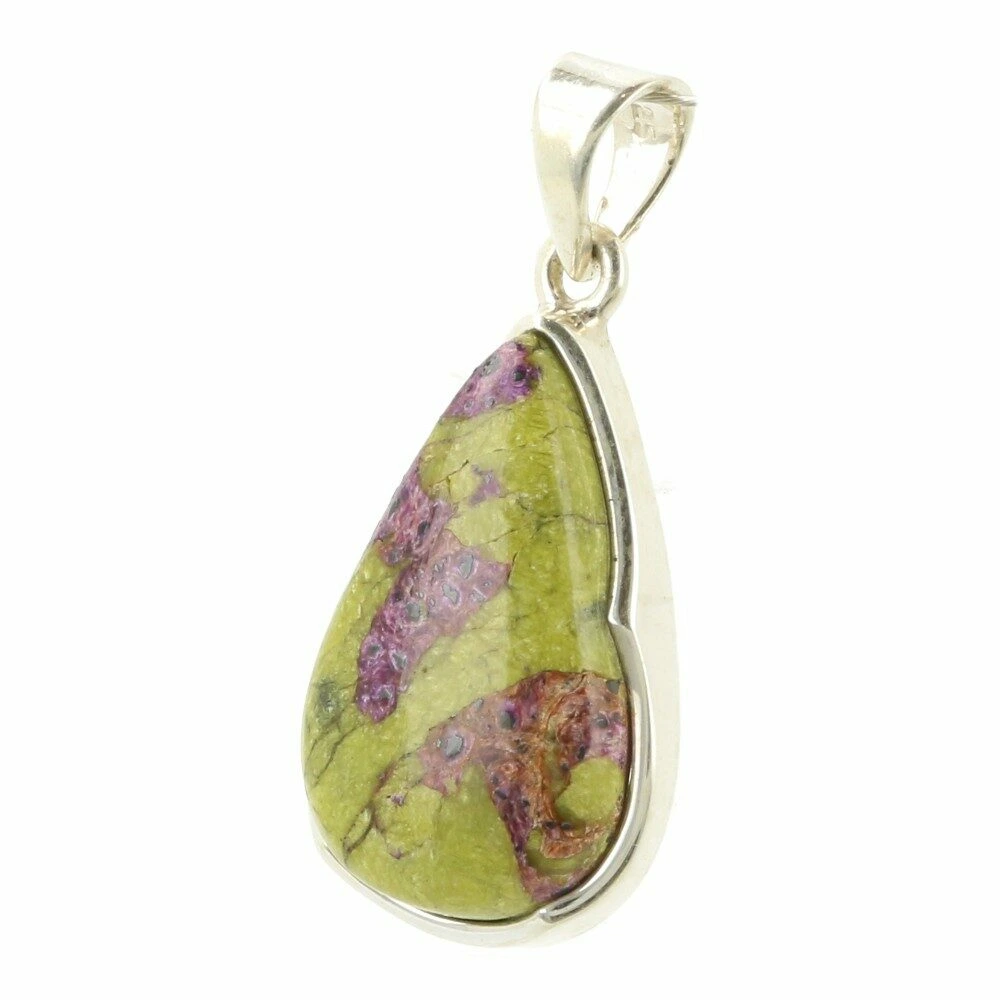 Mooie groen met paarse atlantisiet hanger ‘nr4’, welke is gevat in juwelierskwaliteit 925 sterling zilver. Atlantisiet is een combinatie van serpentijn en stichtiet uit Australië. Je ontvangt de atlantisiet hanger in zilver van de foto. De afmeting van de steen in de hanger is ongeveer 22mm hoog en 14mm breed.