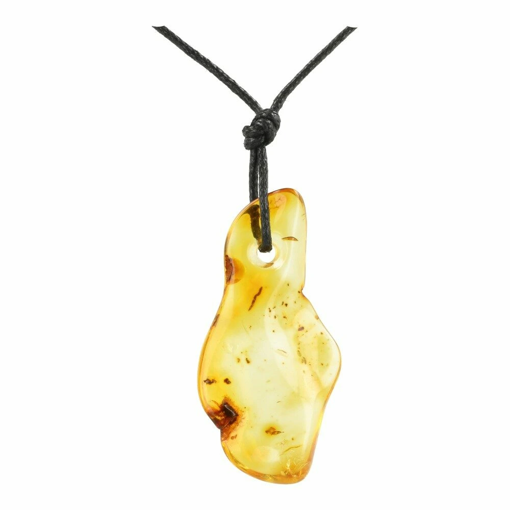 Mooie goudgele barnsteen hanger doorboord groot ‘nr2’ aan zwart waxkoord. Je ontvangt deze grote barnsteen hanger doorboord van de foto. De barnsteen komt uit Litouwen. De afmeting van de barnsteen hanger is ongeveer 54mm hoog en 27mm breed.