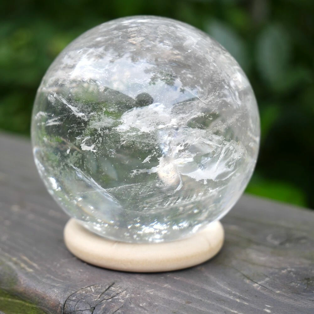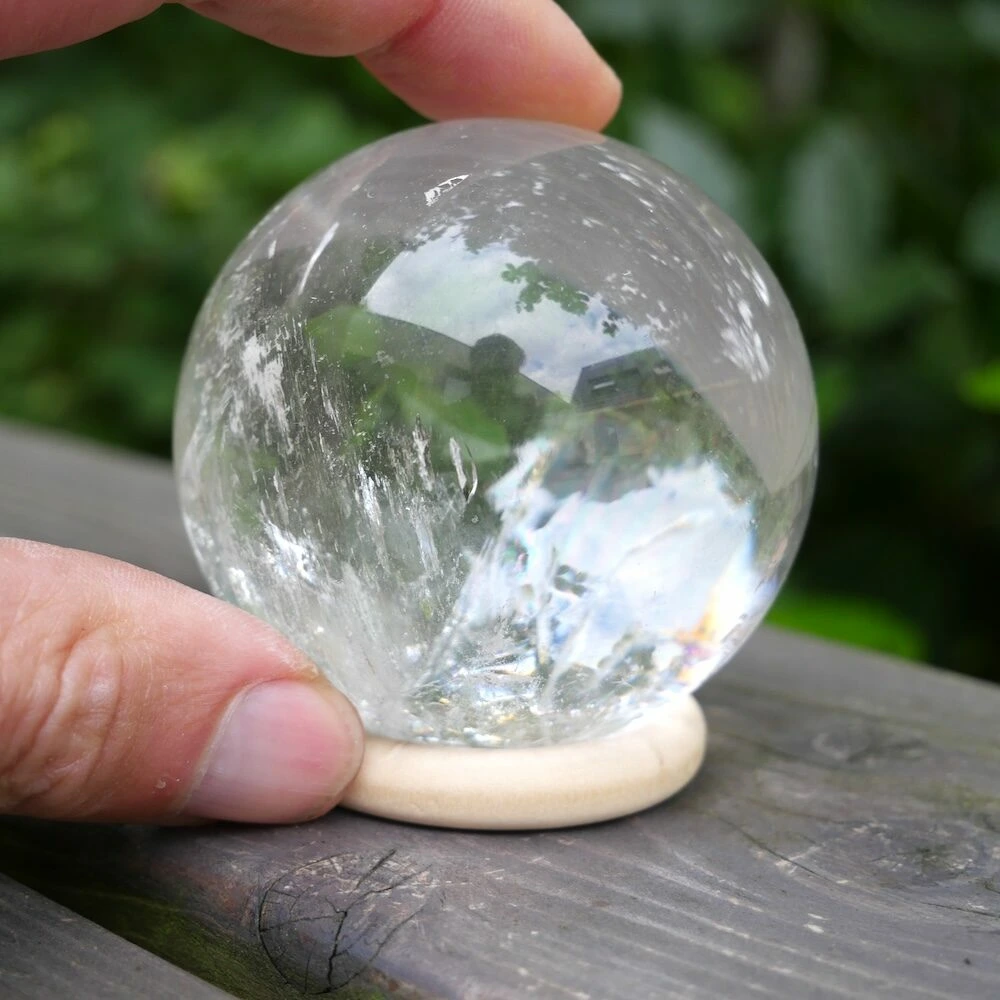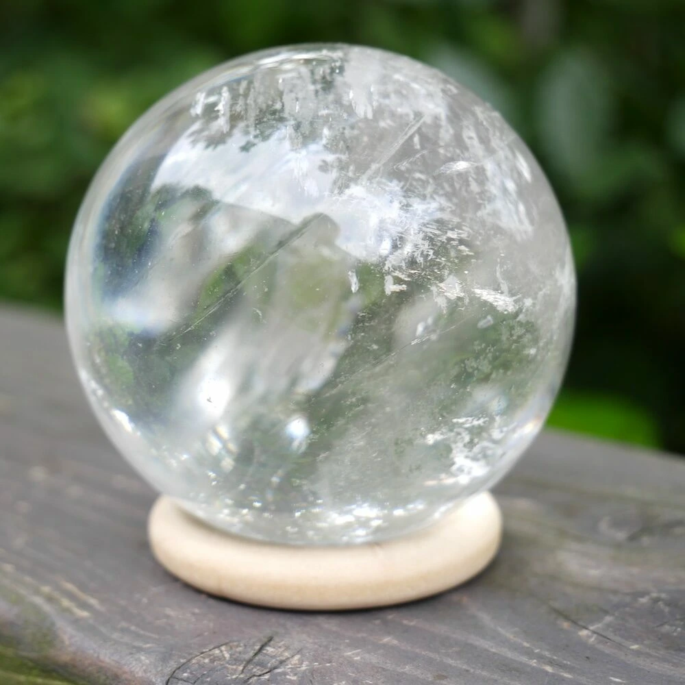 Fraaie A-kwaliteit bergkristal bol met een diameter van 68mm op een houten ring. Deze bergkristal bol komt uit Brazilië en heeft een fraaie heldere en ronde energie die je 3e oog opent en je energie hoog houdt. Je ontvangt de bergkristal bol van de foto.