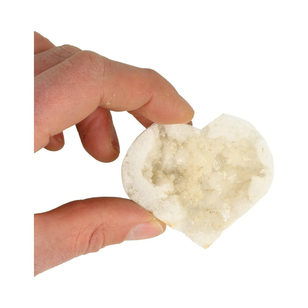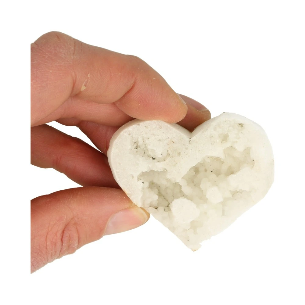 Fraai bergkristal geode hart met een breedte van circa 5,5-6,5cm met gedeeltelijke holtes met kristallen. Deze hartjes zijn gemaakt uit een Marokkaanse bergkristal geode. Je ontvangt een soortgelijk bergkristal hart als op de foto’s.