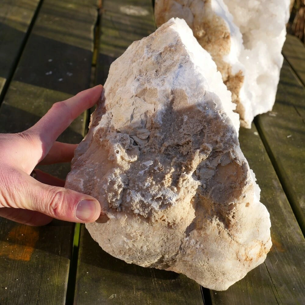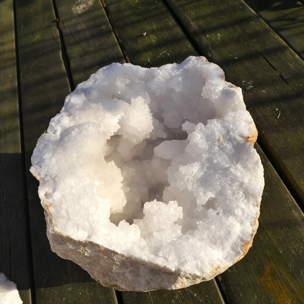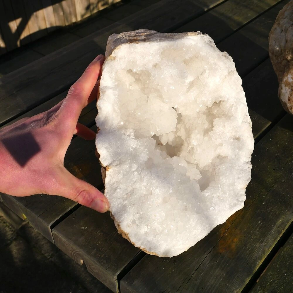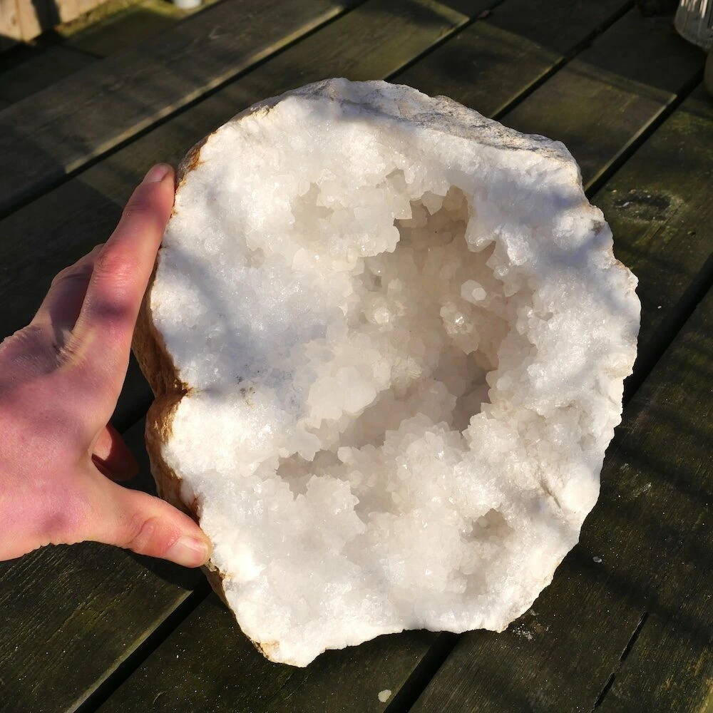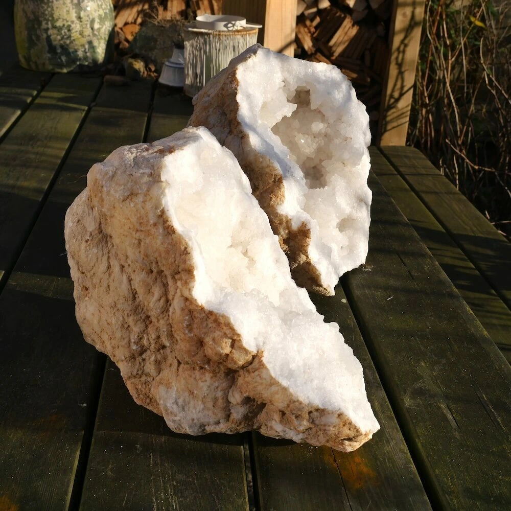 Fraaie grote bergkristal geode XL ‘nr2’ van circa 19kg! De afmeting van het grotere deel van dit bergkristal geodepaar is ongeveer 28cm breed, 18cm diep en 22cm hoog. Het kleinere deel is ongeveer 26 x 22cm en 17cm diep. Je ontvangt het bergkristal geodepaar van op de foto, dus twee stukken die op elkaar passen. Deze bergkristal geode (holle steen) komt uit Marokko en zit vol met fraaie kristallen! We hebben ook kleinere maten op voorraad, dus benader ons gerust als je een andere afmeting zoekt.