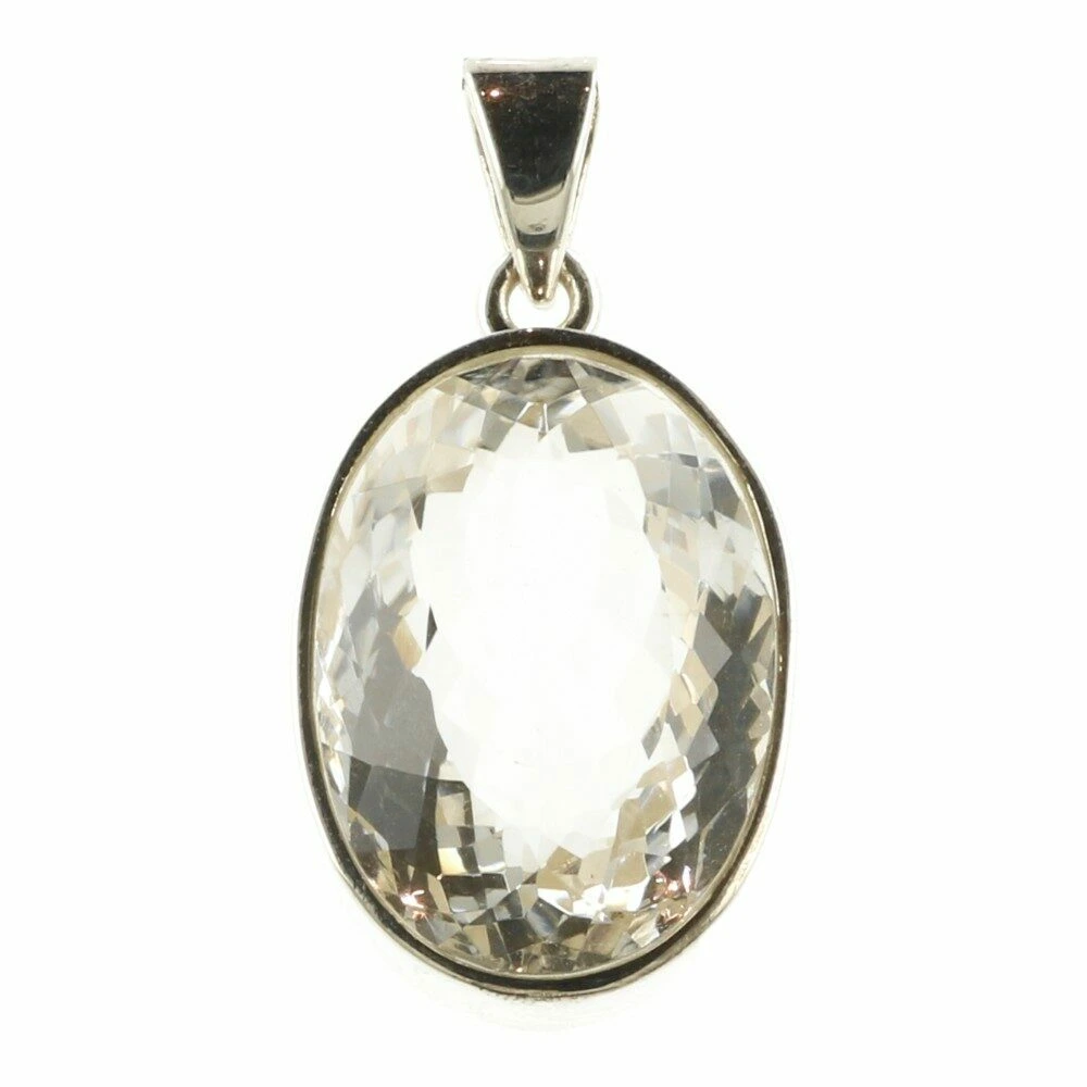 Kristalheldere bergkristal hanger in juwelierskwaliteit 925 sterling zilver ‘nr1’. De bergkristal is facetgeslepen in een fraaie ovale vorm, waardoor deze je tegemoet schittert. De afmeting van de facetgeslepen bergkristal steen in de hanger is ongeveer 24mm hoog en 17mm breed. Je ontvangt de bergkristal hanger in zilver van de foto.