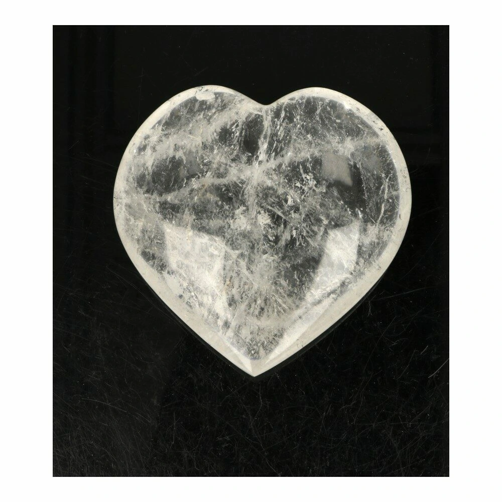 Fraai helder bergkristal hart met een breedte van circa 93mm en hoogte van 92mm. De dikte is ongeveer 32mm. Je ontvangt het bergkristal hart van de foto.