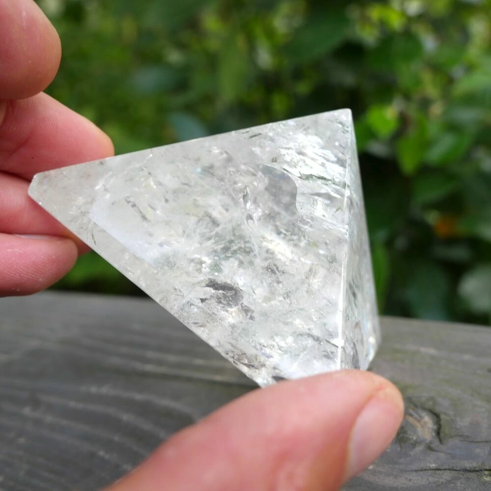 Heldere bergkristal piramide met een grondvlak van 76 x 79mm en 5,5cm hoog. Je ontvangt de bergkristal piramide van de foto. Mooie kwaliteit heldere bergkristal uit Brazilië. De piramidevorm versterkt de energie van bergkristal.