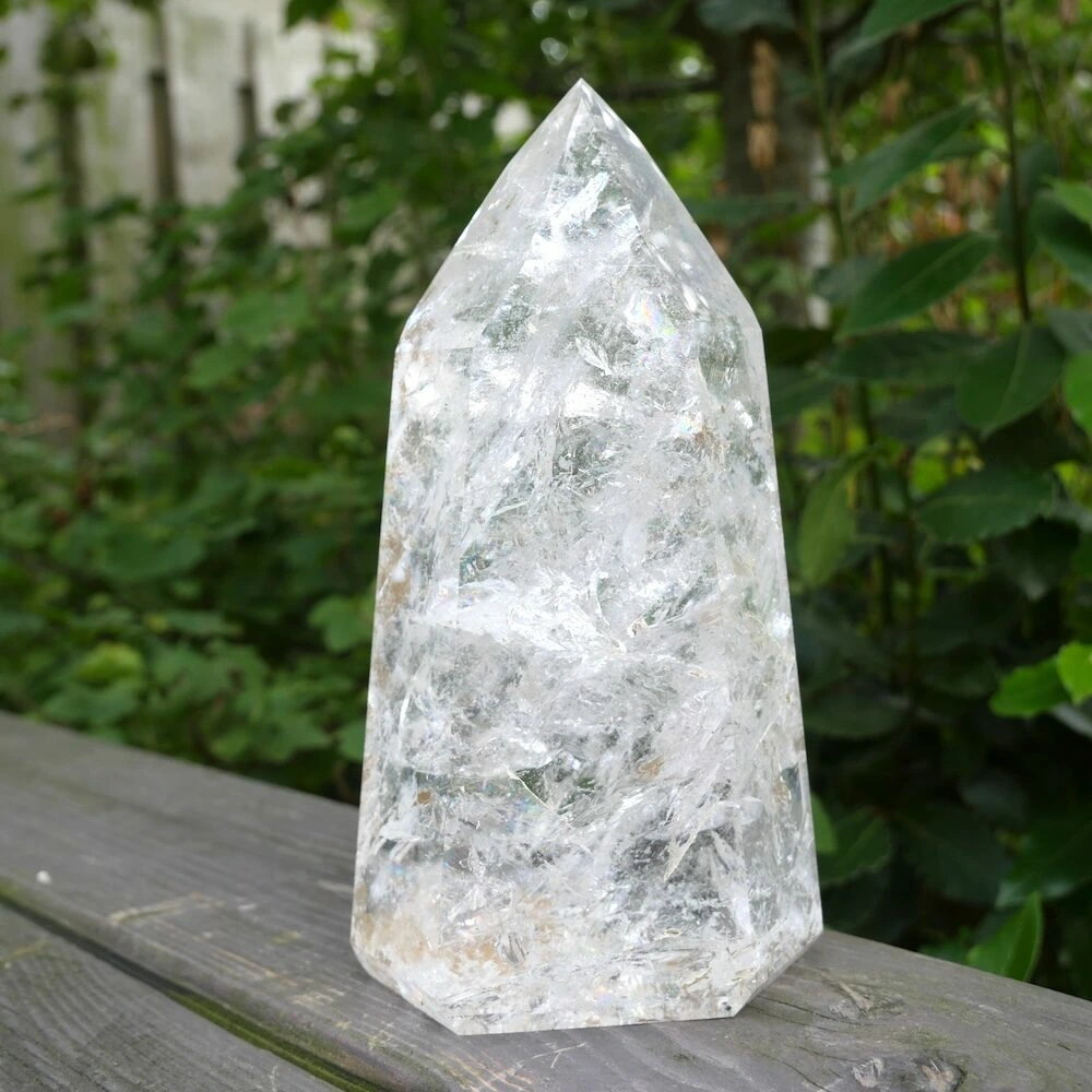 Fraai gepolijste bergkristal punt XL, vol met regenbogen uit Brazilië. Dit heldere stuk met sterke energie straalt je tegemoet. Heerlijk om jouw ruimte te verlichten en mooi als decoratie. De afmetingen zijn ongeveer 20cm hoog, 10,5cm breed en 7 cm diep. Een stralend middelpunt voor jouw ruimte om helderheid en licht te brengen. Je kunt ook fijn met deze punt mediteren voor meer diepgang en connectie met het universum. Je ontvangt uiteraard de punt van de foto.
