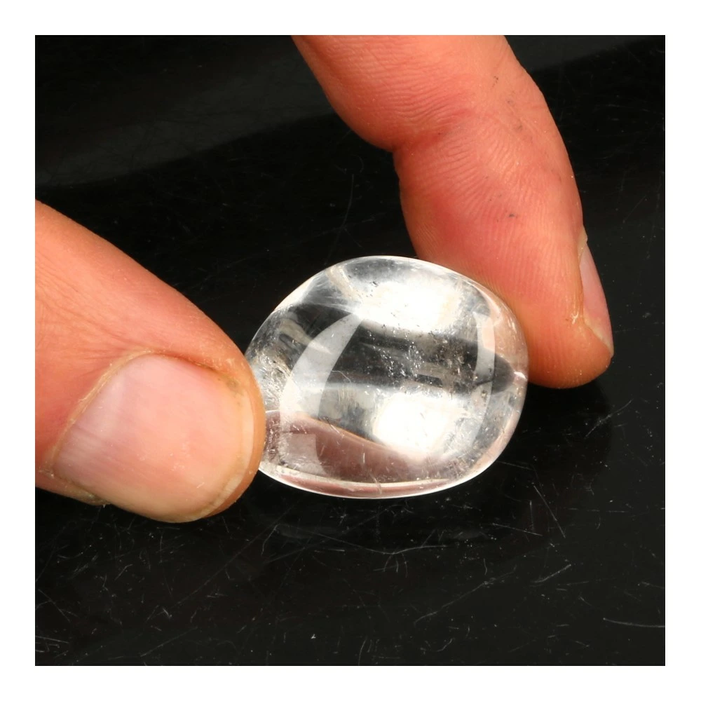 Prachtig heldere bergkristal trommelsteen met een formaat van circa 2-3 cm lengte. Deze bergkristal trommelsteen is ideaal om op verschillende plekken in een ruimte te leggen, om water te vitaliseren, of gewoon om lekker bij je te dragen. Je ontvangt een soortgelijke bergkristal trommelsteen als op de foto.