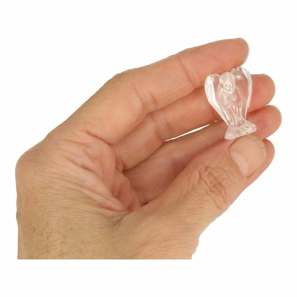 Fijn beschermengel bergkristal op leuk kaartje. De afmeting van de bergkristal beschermengel is ongeveer 2,5cm hoog. Het kaartje me de engel zitten in een doorzichtig zakje. Een leuk cadeautje voor steun en helderheid.