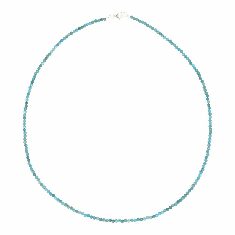 Mooie heldere blauwe apatiet ketting met facet geslepen kralen van 2mm. De sluiting van deze blauwe apatiet ketting is van zilver. De kralen hebben een diameter van 2mm en zijn facet geslepen. Door deze slijpvorm schitteren ze je tegemoet, zeer fraai. Je ontvangt een soortgelijke blauwe apatiet ketting als op de foto, de kwaliteit is zeer gelijkwaardig. Deze zijn zeer mooi om te combineren met een blauwe apatiet hanger in zilver.