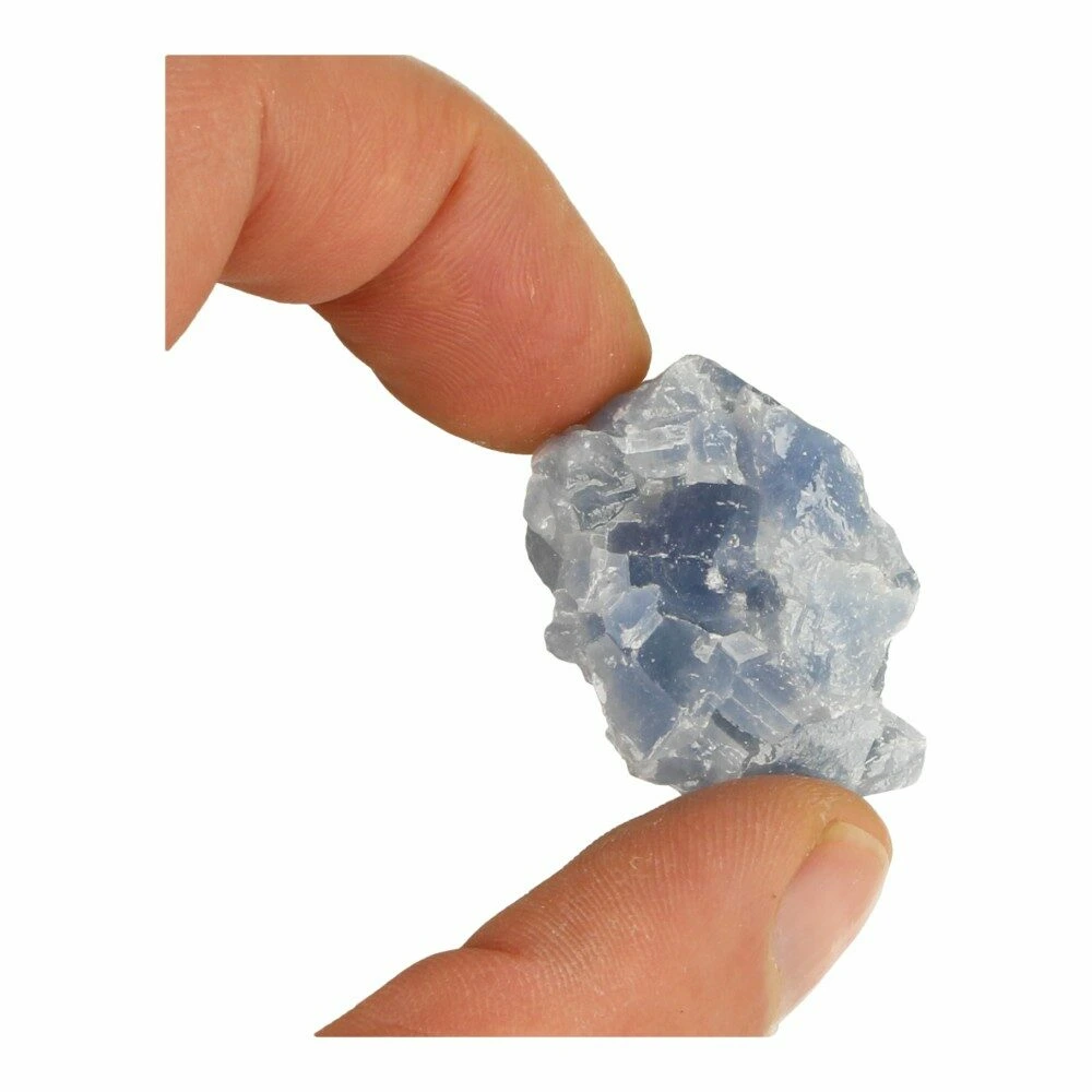 Fijne blauwe calciet ruw met afmeting van circa 3-4cm lang. Je ontvangt een soortgelijke blauwe calciet ruw als op de foto.