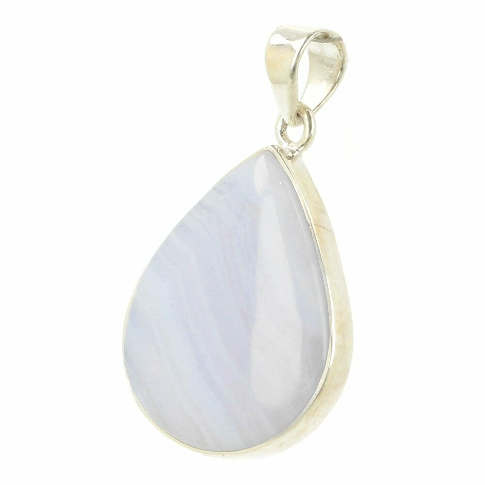 Prachtig zachte blauwe chalcedoon hanger in zilver ‘nr1. Deze A-kwaliteit blauwe chalcedoon heeft mooie patronen en fraaie kleur en wordt ook wel blue lace agaat genoemd. De hanger is gemaakt van juwelierskwaliteit 925 sterling zilver. De afmeting van de blauwe chalcedoon in de hanger is ongeveer 26mm hoog en 22mm breed. Je ontvangt de blauwe chalcedoon hanger in zilver van de foto.