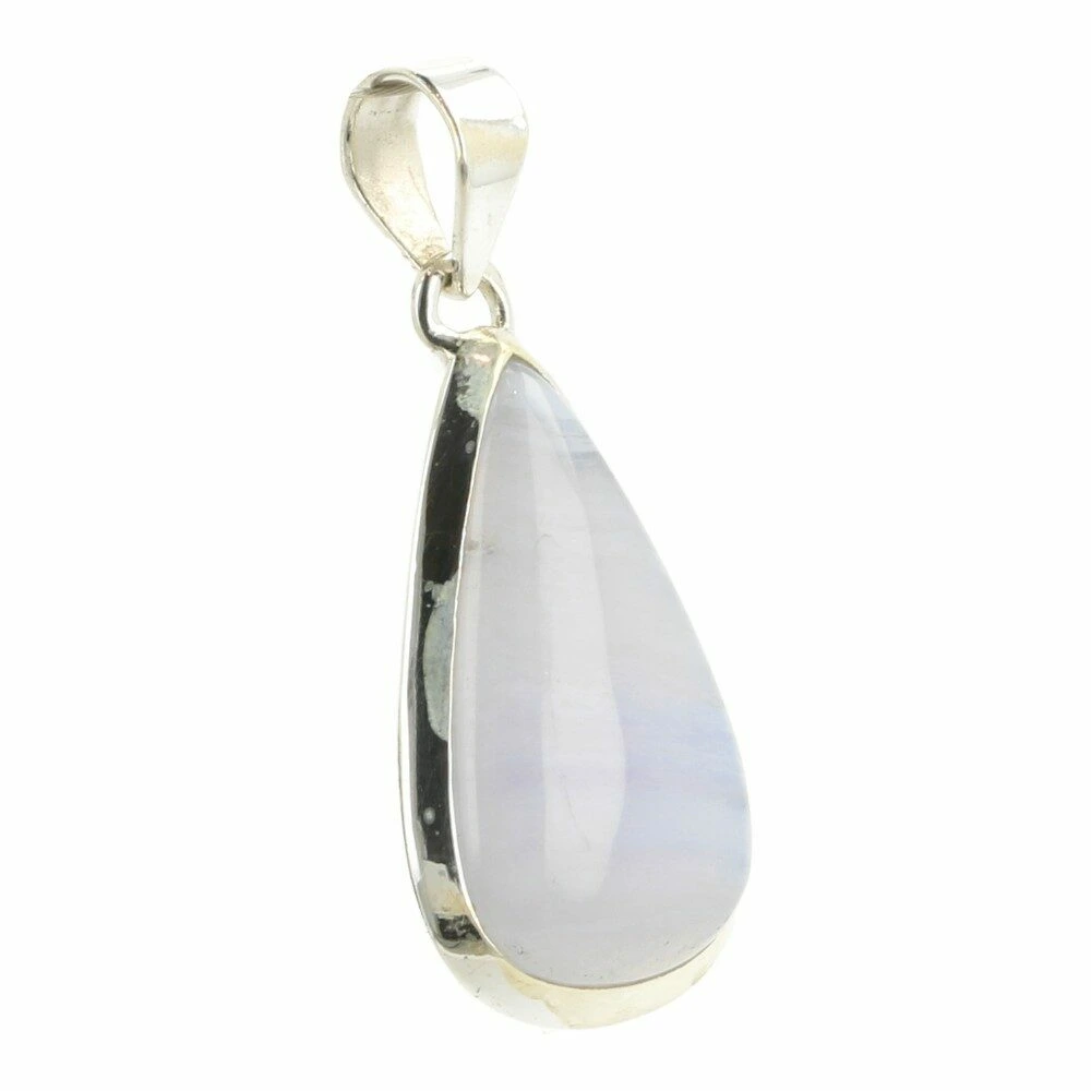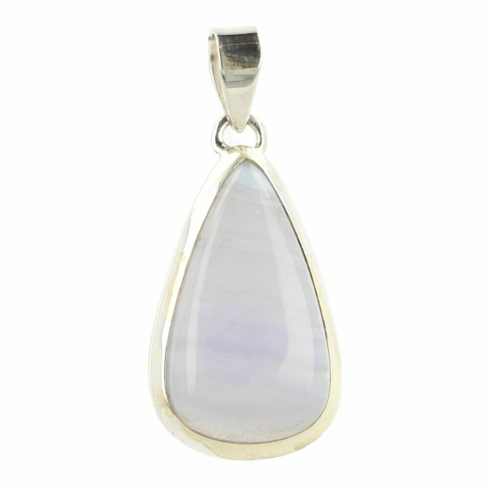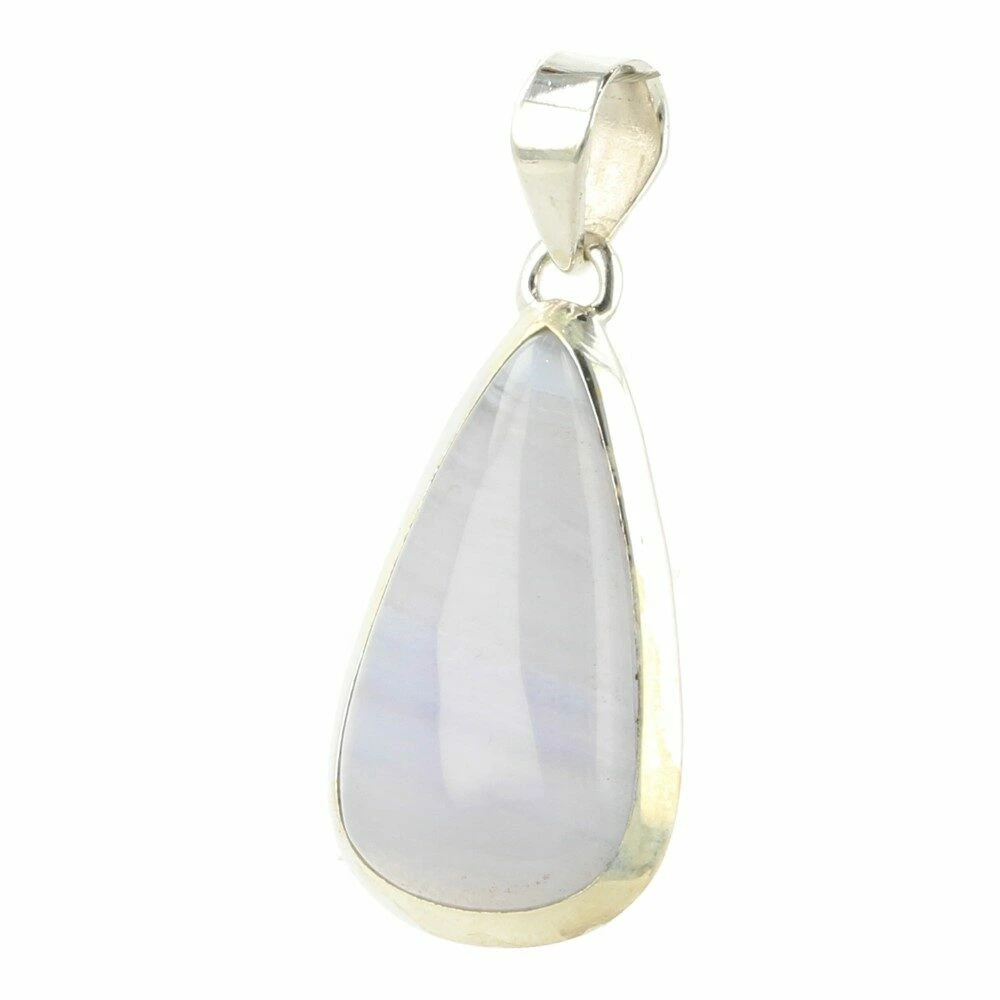 Prachtig zachte blauwe chalcedoon hanger in zilver ‘nr12’. Deze A-kwaliteit blauwe chalcedoon heeft mooie patronen en fraaie kleur en wordt ook wel blue lace agaat genoemd. De hanger is gemaakt van juwelierskwaliteit 925 sterling zilver. De afmeting van de blauwe chalcedoon in de hanger is ongeveer 27mm hoog en 16mm breed. Je ontvangt de blauwe chalcedoon hanger in zilver van de foto.