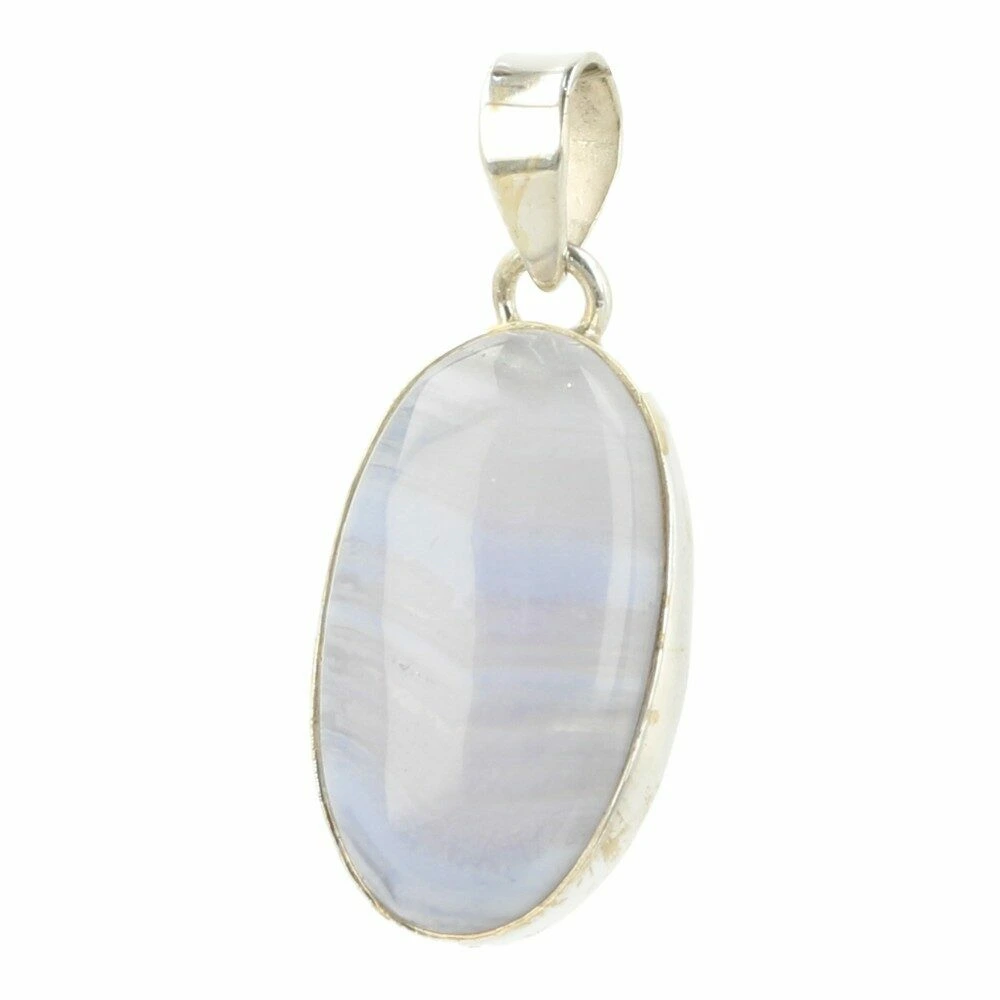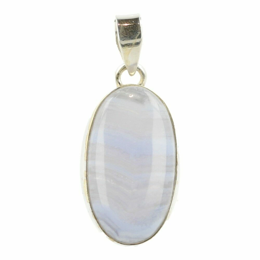 Prachtig zachte blauwe chalcedoon hanger in zilver ‘nr13’. Deze A-kwaliteit blauwe chalcedoon heeft mooie patronen en fraaie kleur en wordt ook wel blue lace agaat genoemd. De hanger is gemaakt van juwelierskwaliteit 925 sterling zilver. De afmeting van de blauwe chalcedoon in de hanger is ongeveer 26mm hoog en 15mm breed. Je ontvangt de blauwe chalcedoon hanger in zilver van de foto.