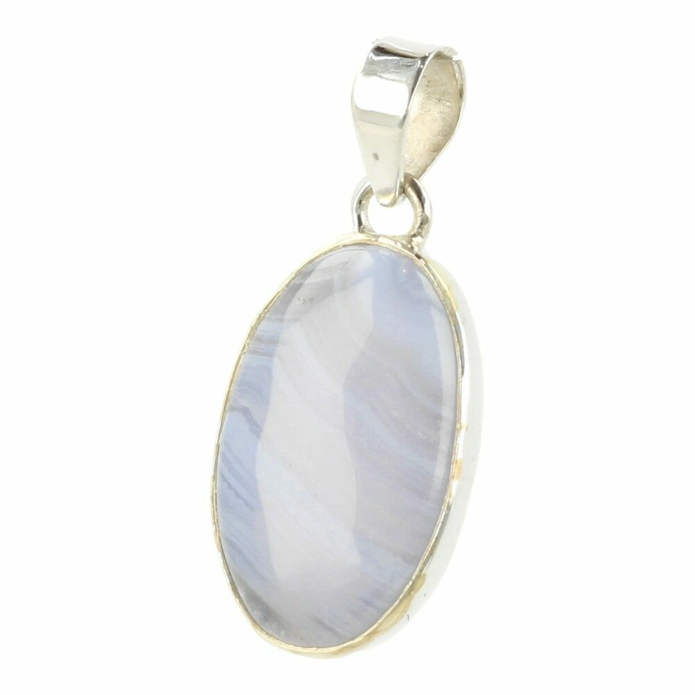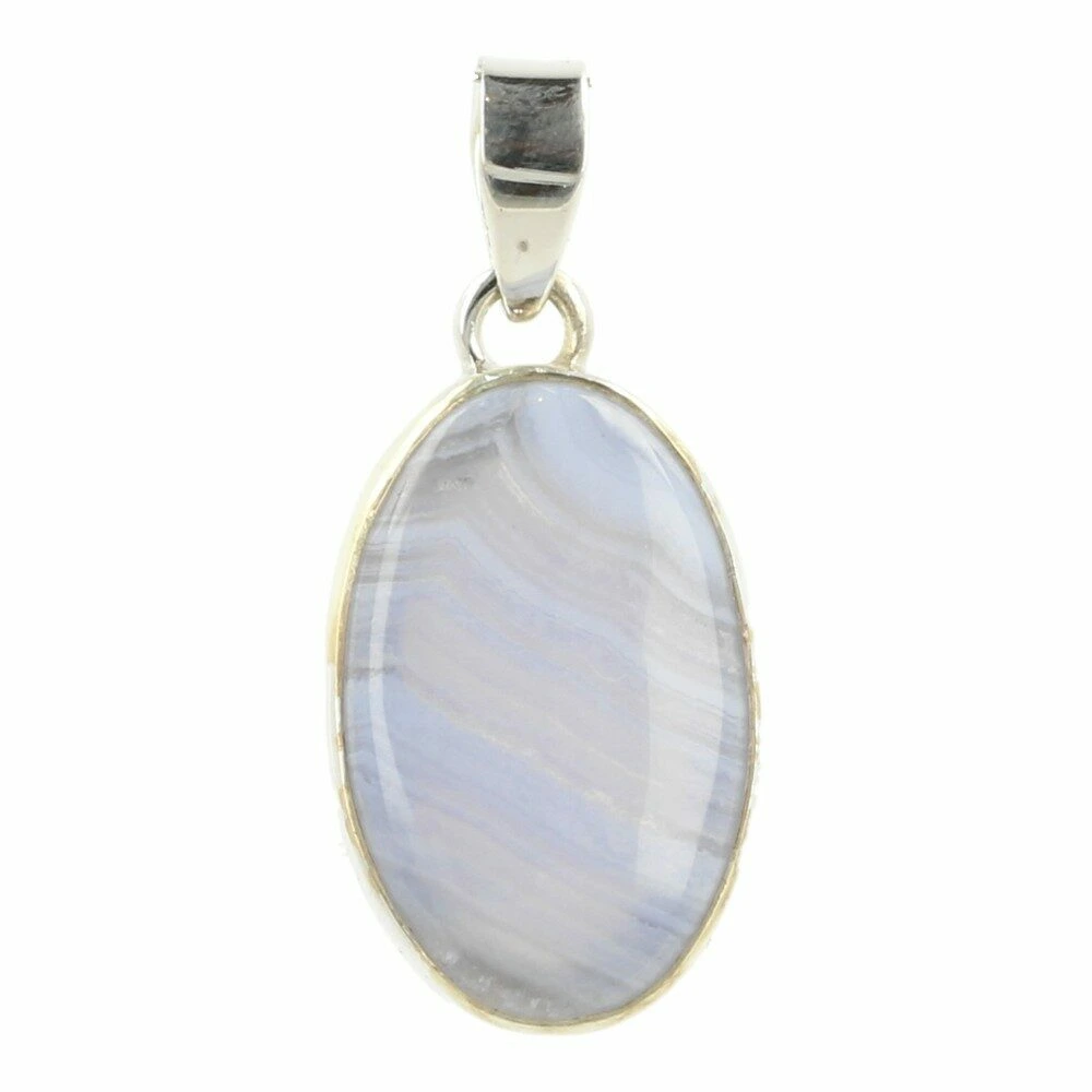 Prachtig zachte blauwe chalcedoon hanger in zilver ‘nr14’. Deze A-kwaliteit blauwe chalcedoon heeft mooie patronen en fraaie kleur en wordt ook wel blue lace agaat genoemd. De hanger is gemaakt van juwelierskwaliteit 925 sterling zilver. De afmeting van de blauwe chalcedoon in de hanger is ongeveer 26mm hoog en 17mm breed. Je ontvangt de blauwe chalcedoon hanger in zilver van de foto.