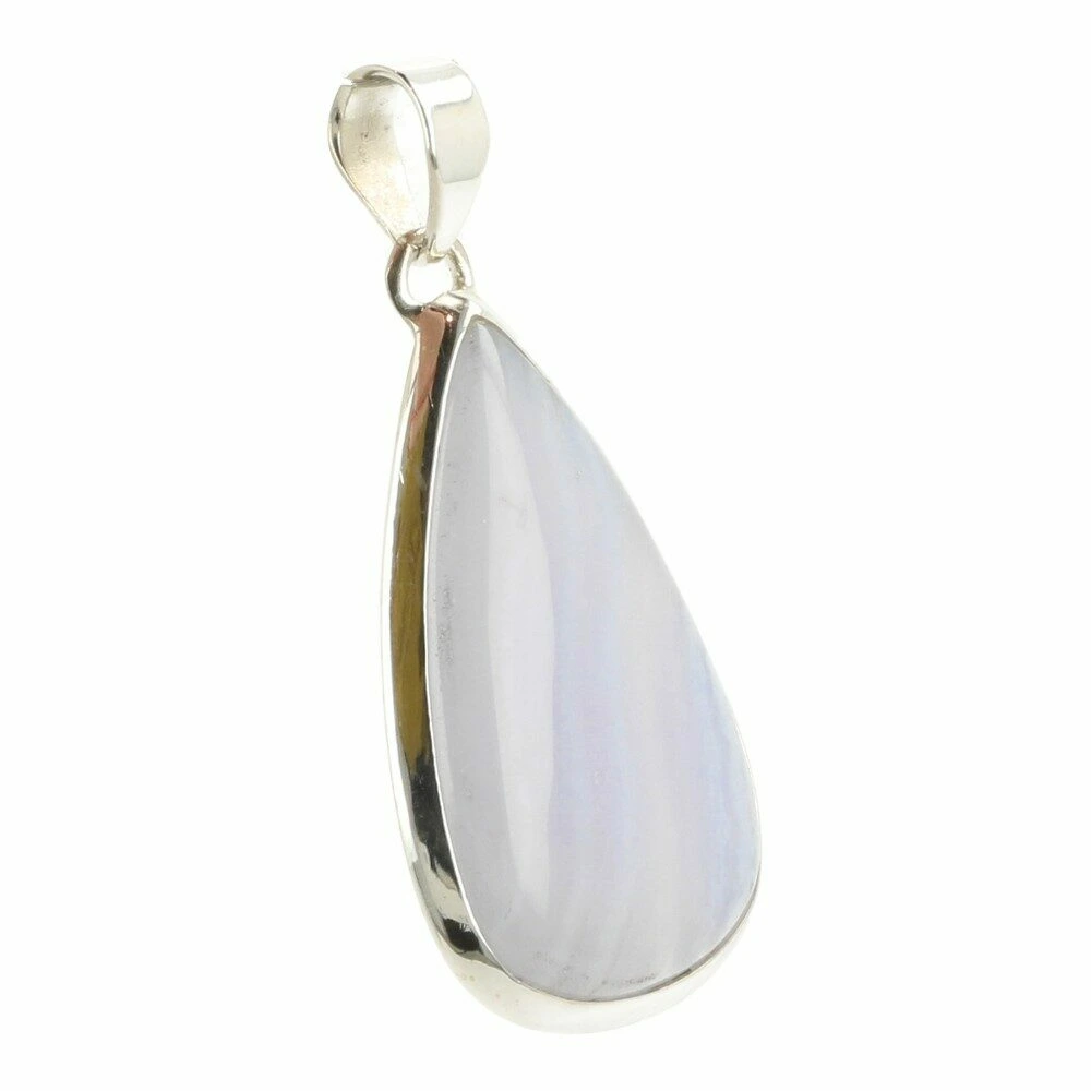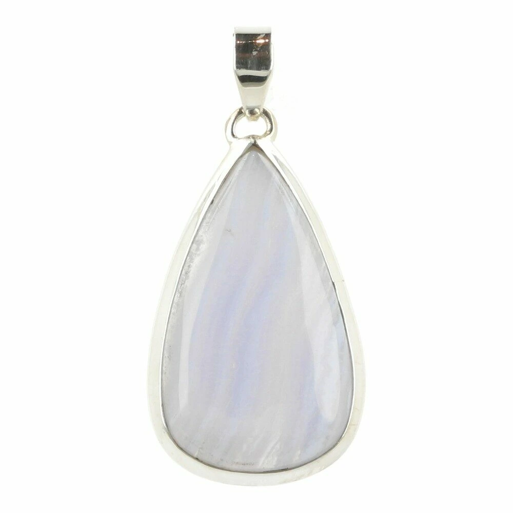 Prachtig zachte blauwe chalcedoon hanger in zilver ‘nr2’. Deze A-kwaliteit blauwe chalcedoon heeft mooie patronen en fraaie kleur en wordt ook wel blue lace agaat genoemd. De hanger is gemaakt van juwelierskwaliteit 925 sterling zilver. De afmeting van de blauwe chalcedoon in de hanger is ongeveer 35mm hoog en 19mm breed. Je ontvangt de blauwe chalcedoon hanger in zilver van de foto.