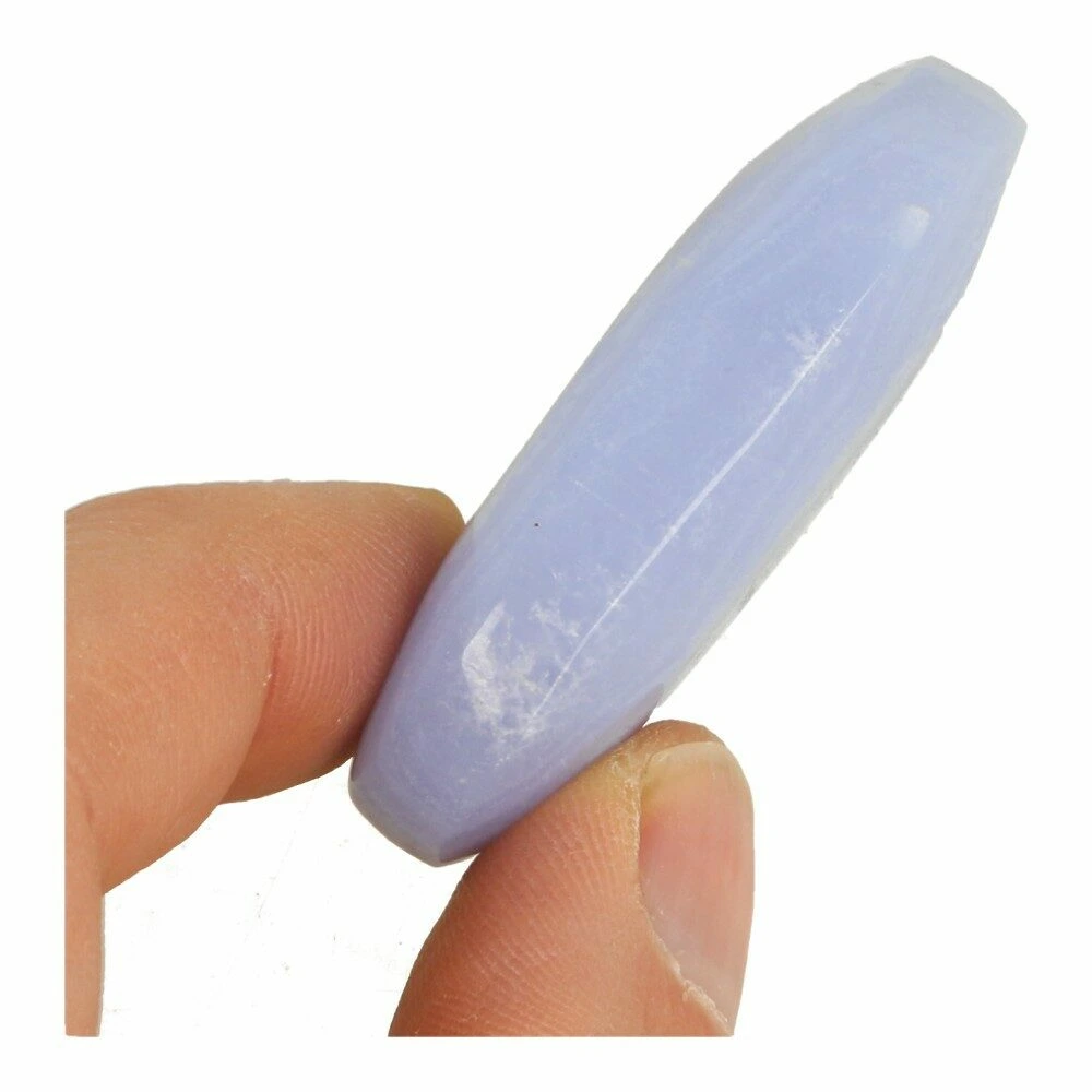 Blauwe chalcedoon activeert het keel- en derde-oogchakra. Hierdoor is het een krachtige steen om te gebruiken in communicatie met de geestenwereld of het onderbewuste. Daarnaast helpt het je om positiever en bewuster in je communicatie te zijn. Hierdoor is het ook heel geschikt voor mensen die hun stem als instrument gebruiken.