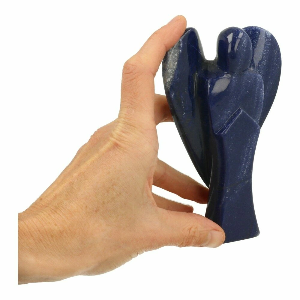 Fijne donkere blauwe kwarts engel van ongeveer 138mm hoog, 90mm breed en 36mm diep uit Brazilië. Je een ontvangt de blauwe kwarts engel van de foto. Topkwaliteit blauwe kwarts met intense kleur en heldere energie.
