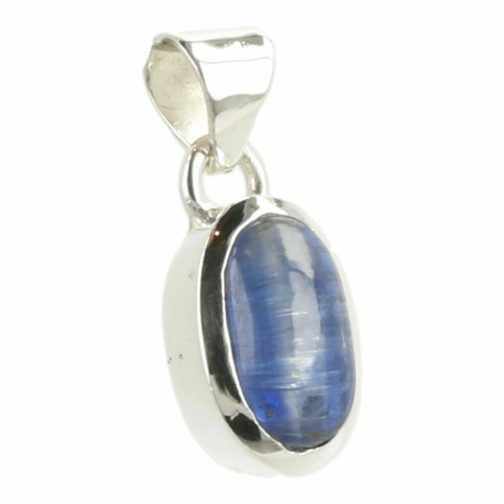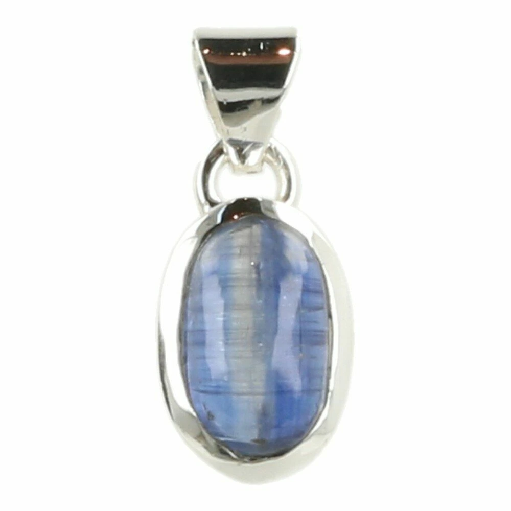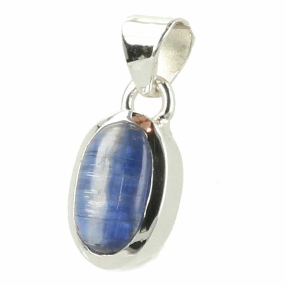 Mooie blauwe kyaniet hanger in zilver ‘nr8’ uit Brazilië. Deze fraaie A-kwaliteit kyaniet hanger in zilver is bol geslepen en heeft een mooie schittering. De blauwe kyaniet is in juwelierskwaliteit 925 sterling zilver gezet. De afmeting van de blauwe kyaniet steen in de hanger is ongeveer 12mm hoog en 8mm breed. Je ontvangt de kyaniet hanger in zilver van de foto.
