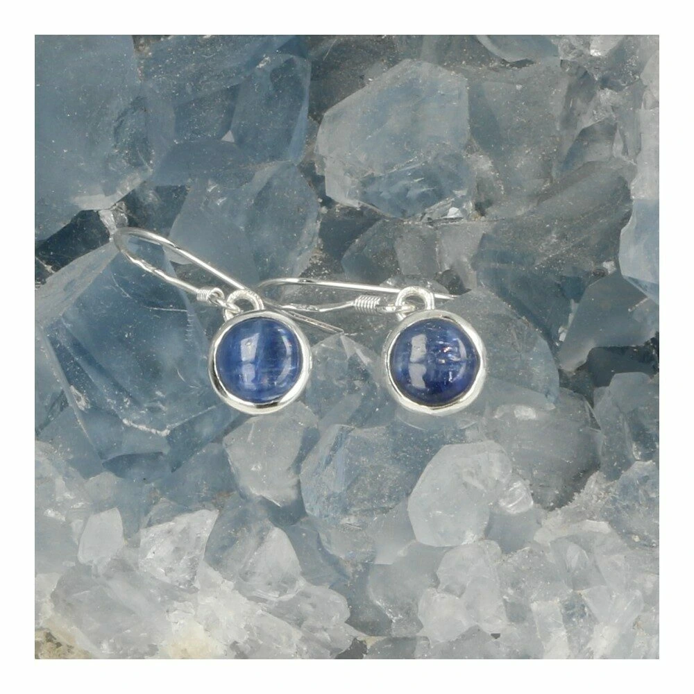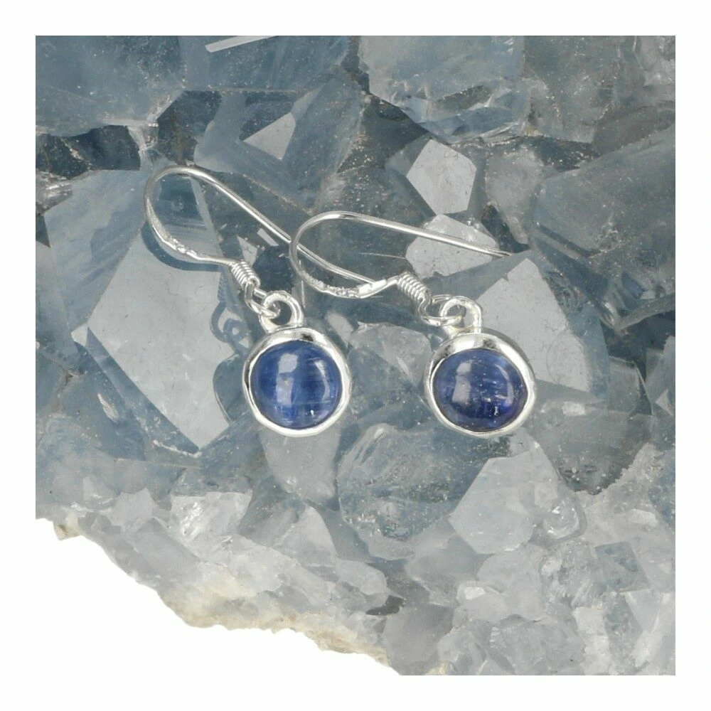 Blauwe kyaniet oorbel in zilver rond 7mm