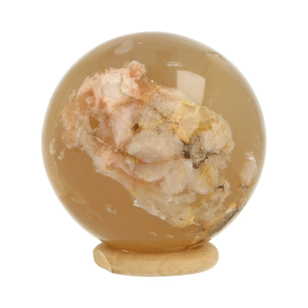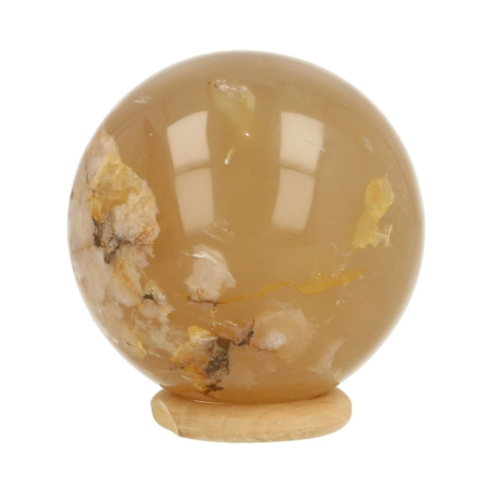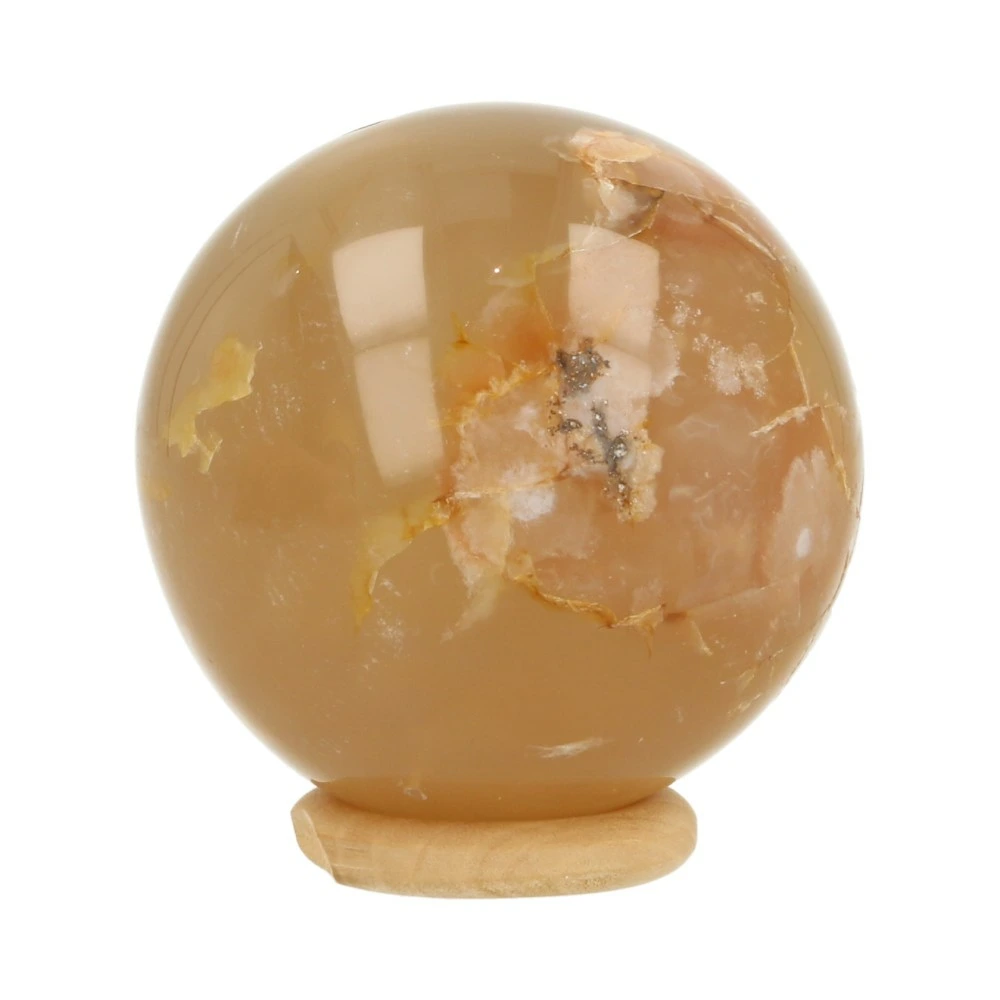 Fijne bloemagaat bol met een diameter van 53mm uit Madagaskar. Bloemagaat is de naam voor de heldere agaat met wittige vlekken. Je ontvangt de bloemagaat bol van de foto, inclusief houten ringetje.