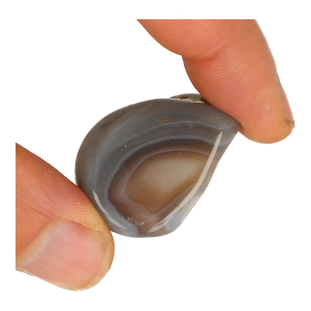 Mooie Botswana agaat trommelsteen met de kenmerkende laagstructuur. De Botswana agaat trommelsteen komt in verschillende kleuren voor en iedere steen is uniek in kleur en uiterlijk. We zoeken de meest positieve voor je uit bij je bestelling. De afmeting is circa 3-3,5cm.