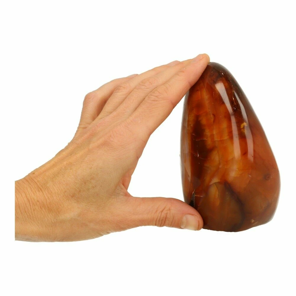 Fijne rode carneool vrije vorm gepolijst van ruim 12cm hoog, 9cm breed en 7cm dik. Je ontvangt de carneool vrije vorm van de foto. Deze carneool vrije vorm heeft een fijne tekening en een natuurlijke holte. Ze nodigt je uit mee te bewegen met de flow van het leven en om te genieten van de cadeautjes die je onderweg ontvangt.