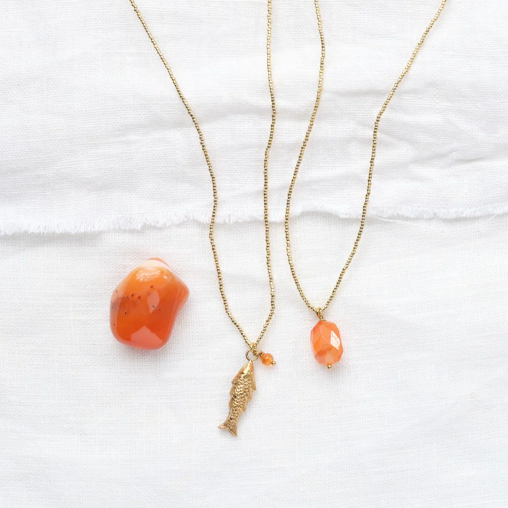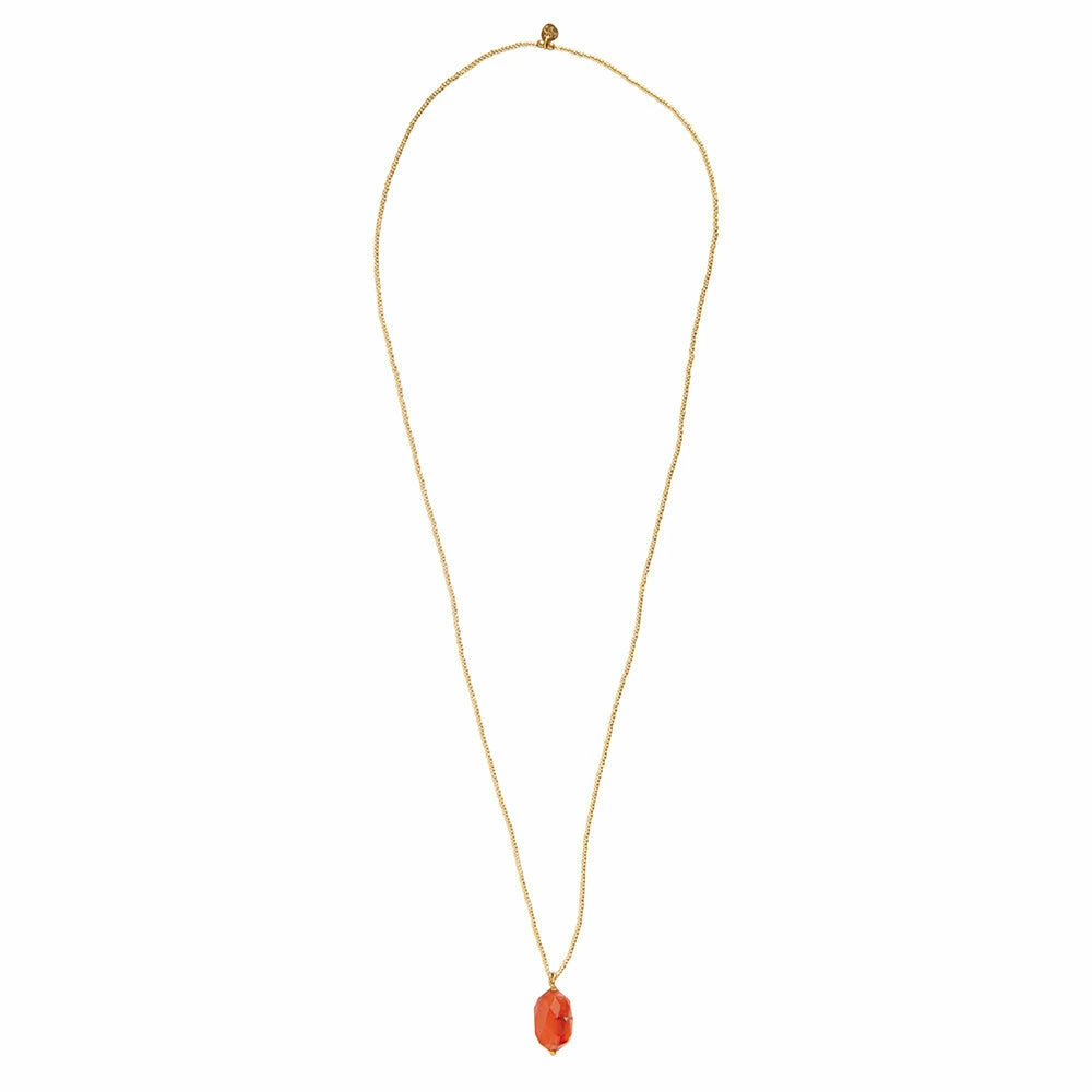 Ontdek de Calm Carneool Goudkleurige Ketting van A Beautiful Story. Deze prachtige ketting is één van onze classics. De handgemaakte ketting bestaat uit glaskralen, verguld messing en een grote carneool edelsteen. Met een lengte van 62 centimeter past de ketting mooi bij iedereen.
