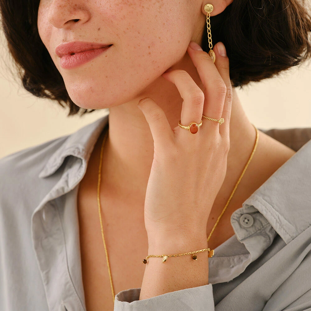Onze handen. We zien ze de hele dag – ze werken, tasten, voelen en vormen een belangrijk onderdeel van onze lichaamstaal. Met de verstelbare Certain Carneool Ring krijgen ze de TLC die ze verdienen. Het stijlvolle vergulde ontwerp is even tijdloos als modern, de glad gepolijste carneool edelsteen triggert je creativiteit en levenslust. Je voelt dat je leeft.