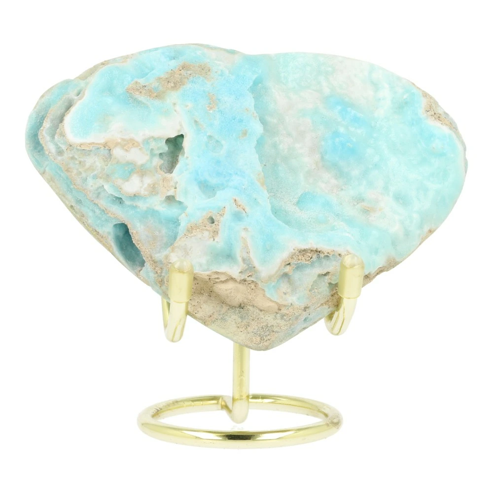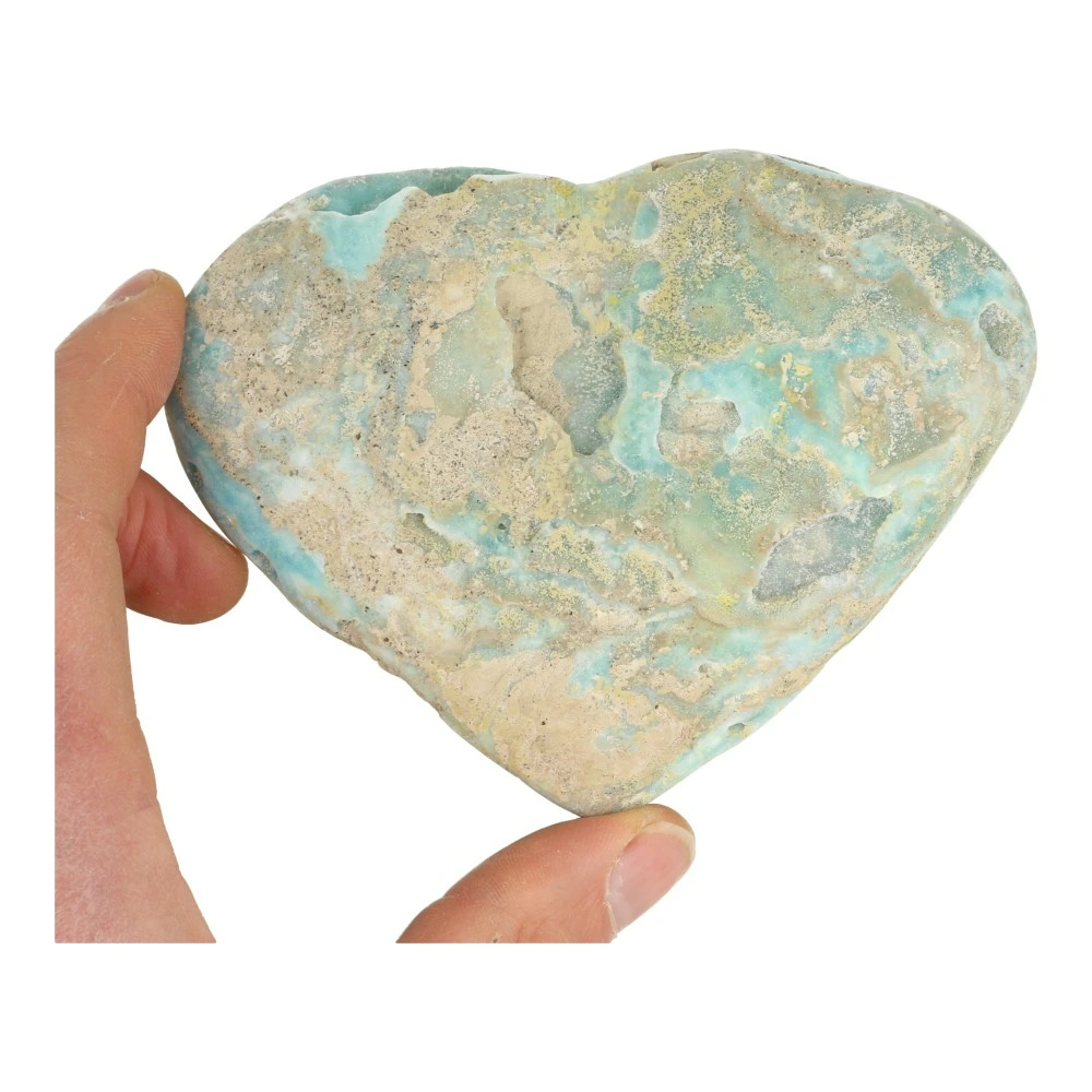 Fraai Carribean blue calciet hart van ongeveer 13mm breed, 10cm hoog en 2,5cm dik. Carribean blue calciet is een nieuwe vondst uit 2020 en is een fraaie variant van blauwe aragoniet. De Carribean blue calciet bevat vaak natuurlijke holtes. Je ontvangt het Carribean blue calciet hart van de foto zonder de standaard. De standaard hebben we in zilver- of goudkleurig of zwart en is los aan te schaffen.