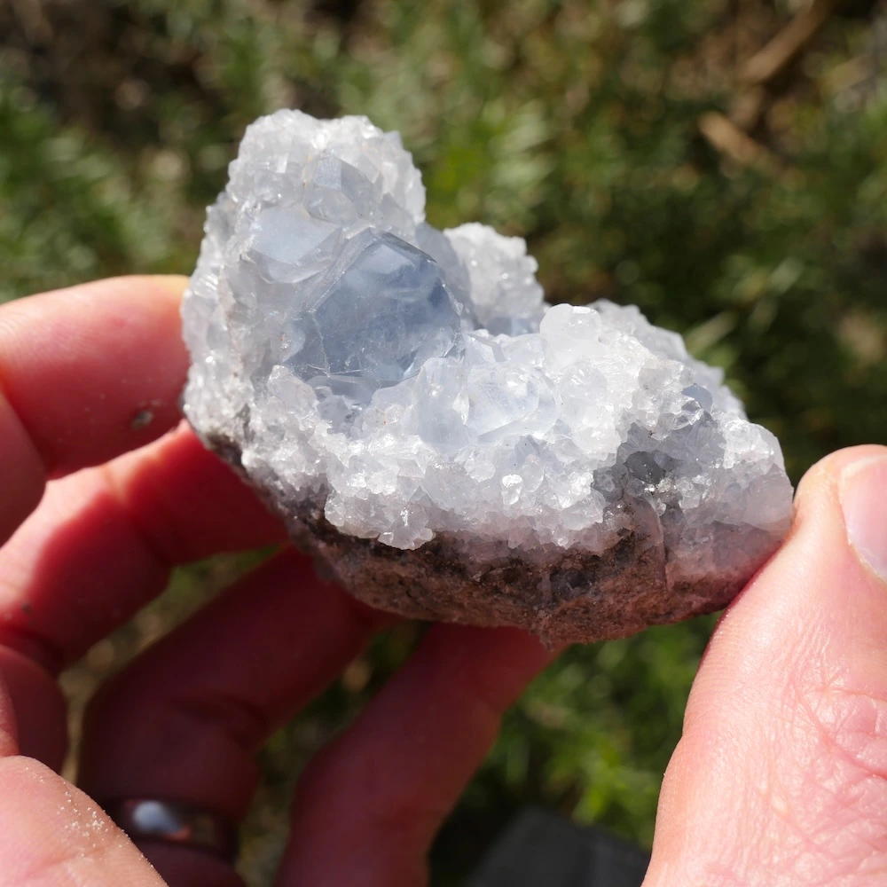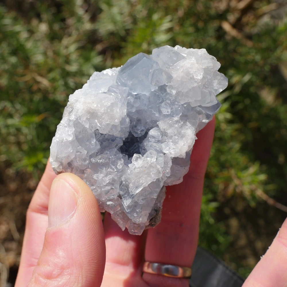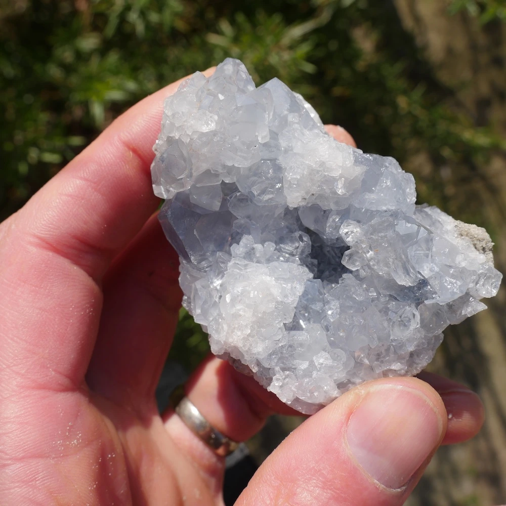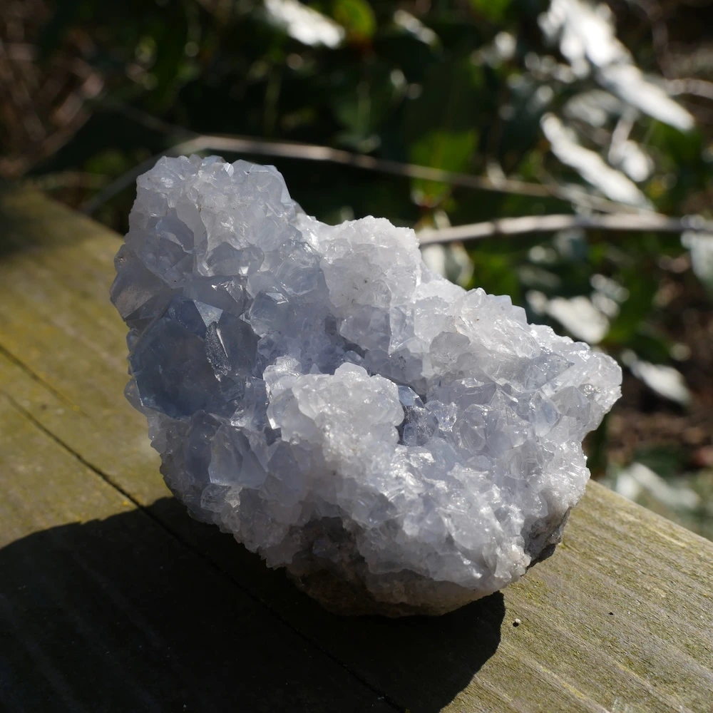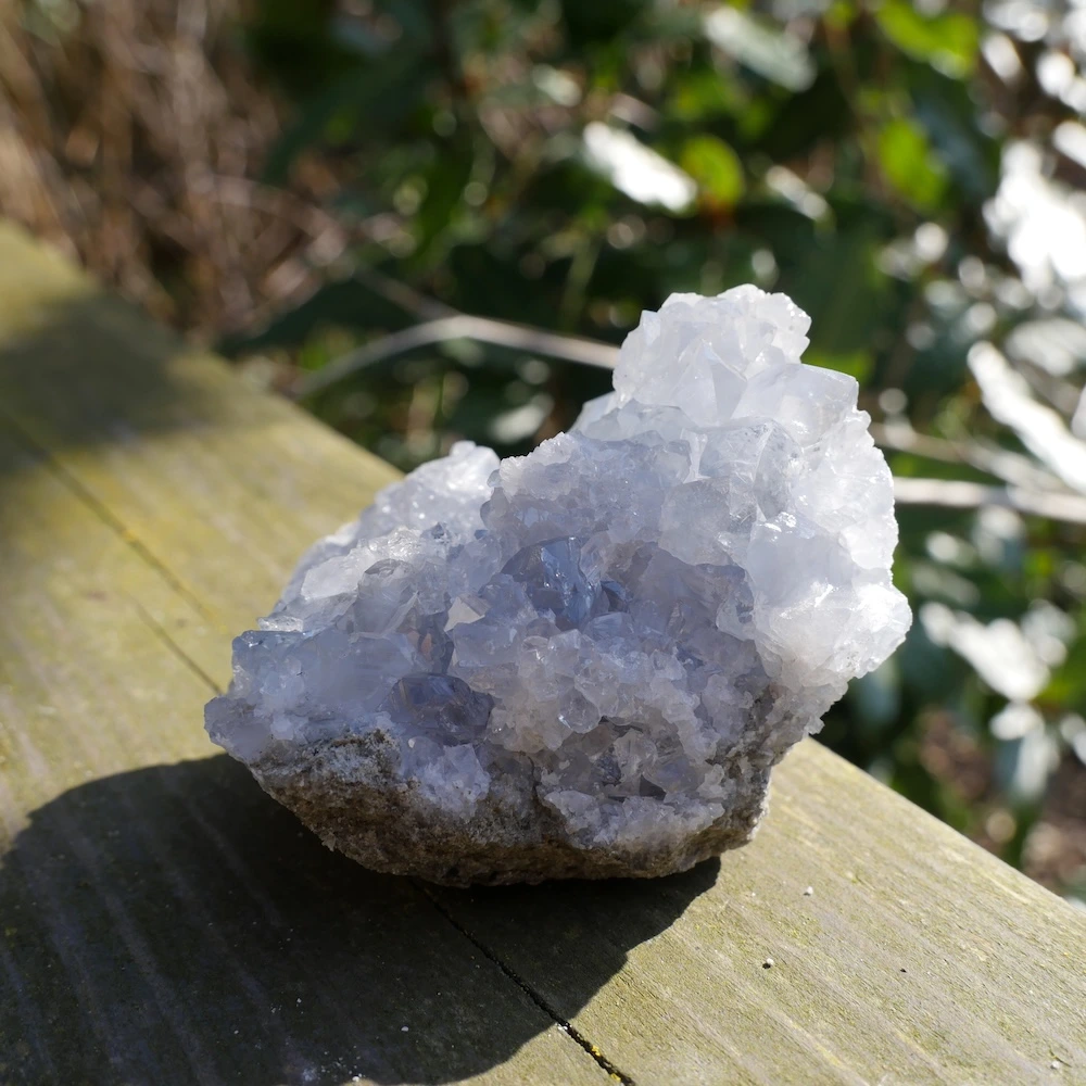 Prachtige helder celestien ruw cluster met hele fijne energie en heldere kristallen. Dit fijne stuk met hele mooie diepe kleur en energie is circa 7,3 x 5,8 cm en 5,7cm hoog. Zoek je een ander stuk? Neem contact met ons op, want we hebben een steeds wisselende voorraad mooie celestien clusters!