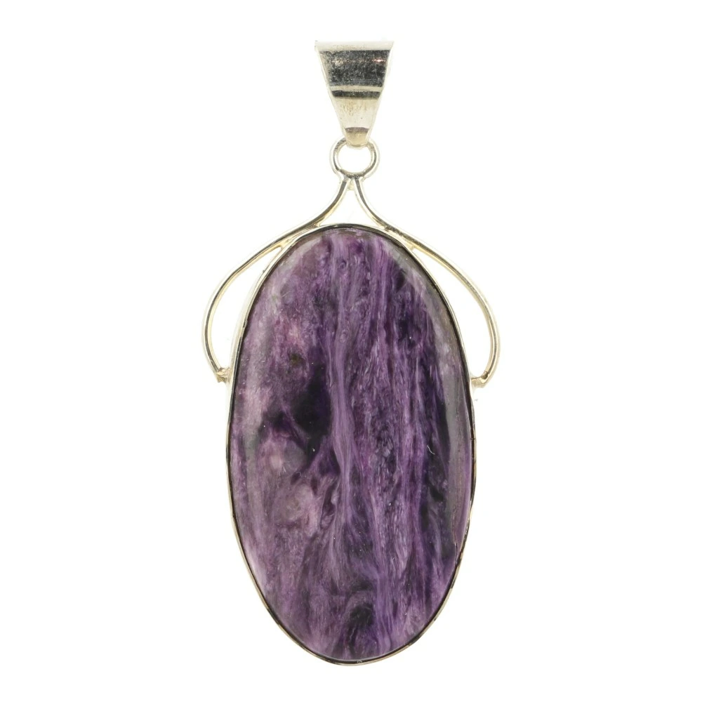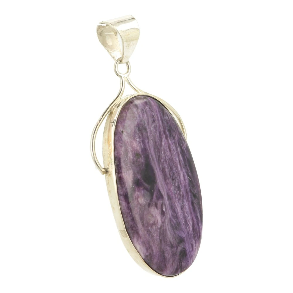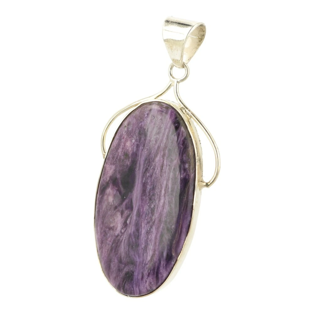Prachtig gemêleerd paarse charoiet hanger, gevat in juwelierskwaliteit 925 sterling zilver. De afmeting van de charoiet steen in deze hanger is ongeveer 43mm hoog en 24mm breed en met sierlijk zilverwerk. Je ontvangt de hanger van de foto.