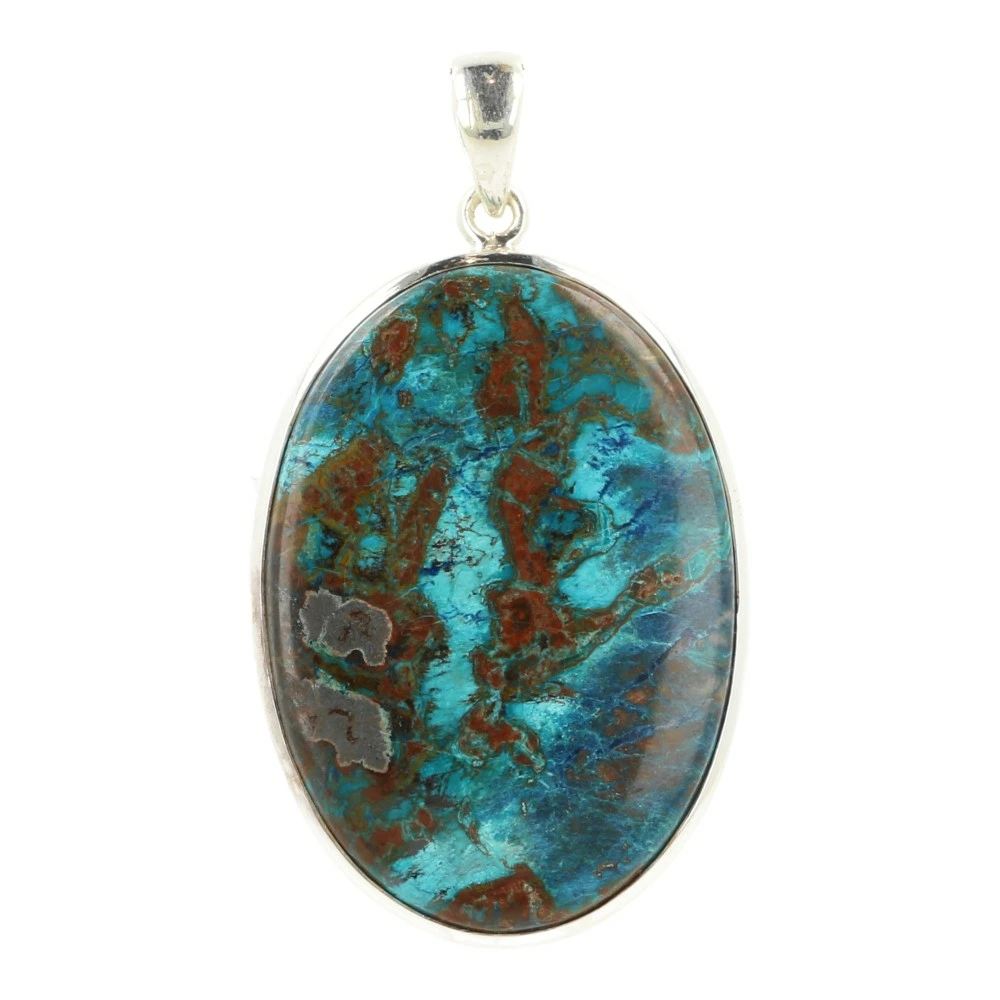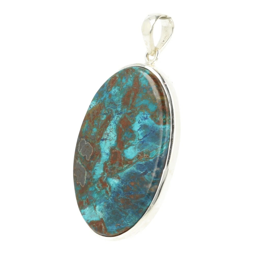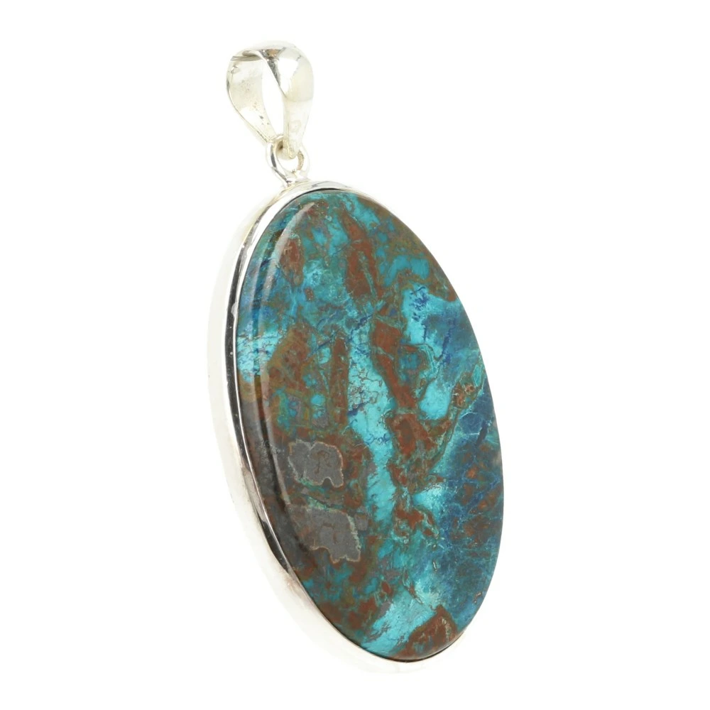 Prachtige chrysocolla met shattuckiet hanger in zilver van juwelierskwaliteit (925 sterling). De afmeting van de chrysocolla met shattuckiet steen in de hanger is ongeveer 43mm hoog en 30mm breed. Je ontvangt de chrysocolla met shattuckiet hanger van de foto.