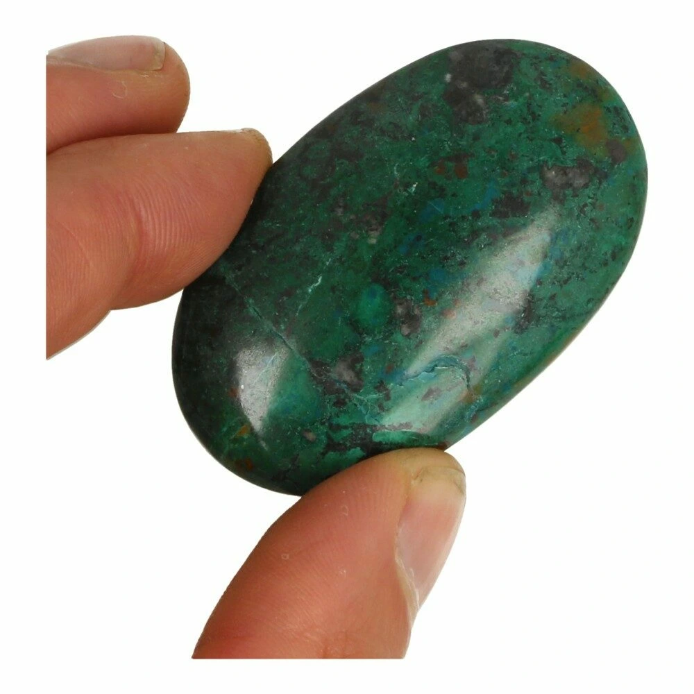 Chrysocolla komt voor in verschillende kleuren blauw, groen en bruin. Iedere steen is uniek in kleurschakering en tekening.