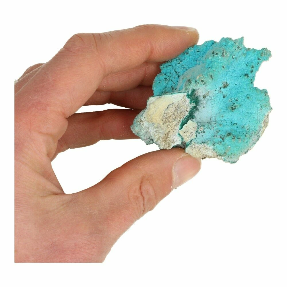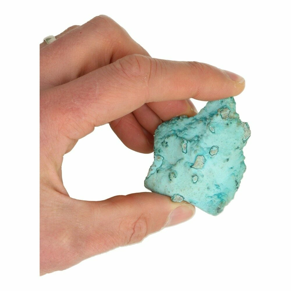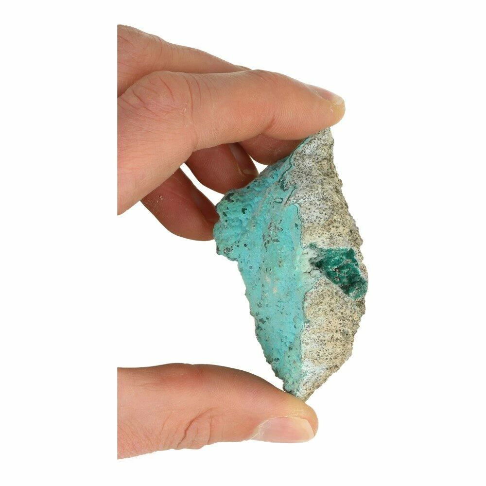 Bijzonder lichtblauwe chrysocolla ruw met een afmeting van circa 6-8cm lang uit Democratische Republiek Congo. Ieder stukje ruwe chrysocolla is uniek van tekening en kleurstelling, je ontvangt een soortgelijk stuk als op de foto. Ze zijn superlicht van gewicht en allemaal anders.