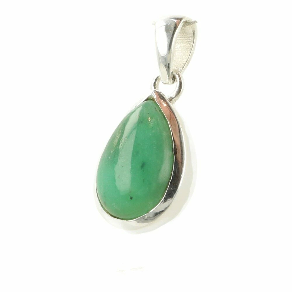 Mooie groene chrysopraas hanger in juwelierskwaliteit zilver (925 sterling) ‘nr2’ in druppelvorm. De afmeting van de chrysopraas steen in de hanger is ongeveer 13mm hoog en 9mm breed. Je ontvangt de fraaie chrysopraas hanger in zilver van de foto.