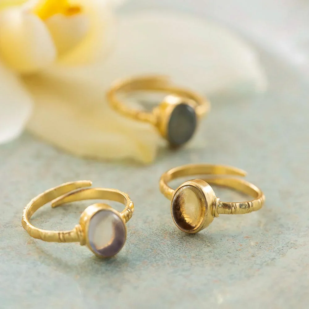 De Certain Citrien Vergulde Ring van A Beautiful Story is handgemaakt van verguld messing en heeft een ovale citrien edelsteen. De ring heeft een binnenmaat van 16 millimeter en is naar wens te verstellen. Citrien vult elk moment met geluk en plezier. De citrien is gemaakt door amethist te verhitten, zogenaamde ‘gebrande citrien’