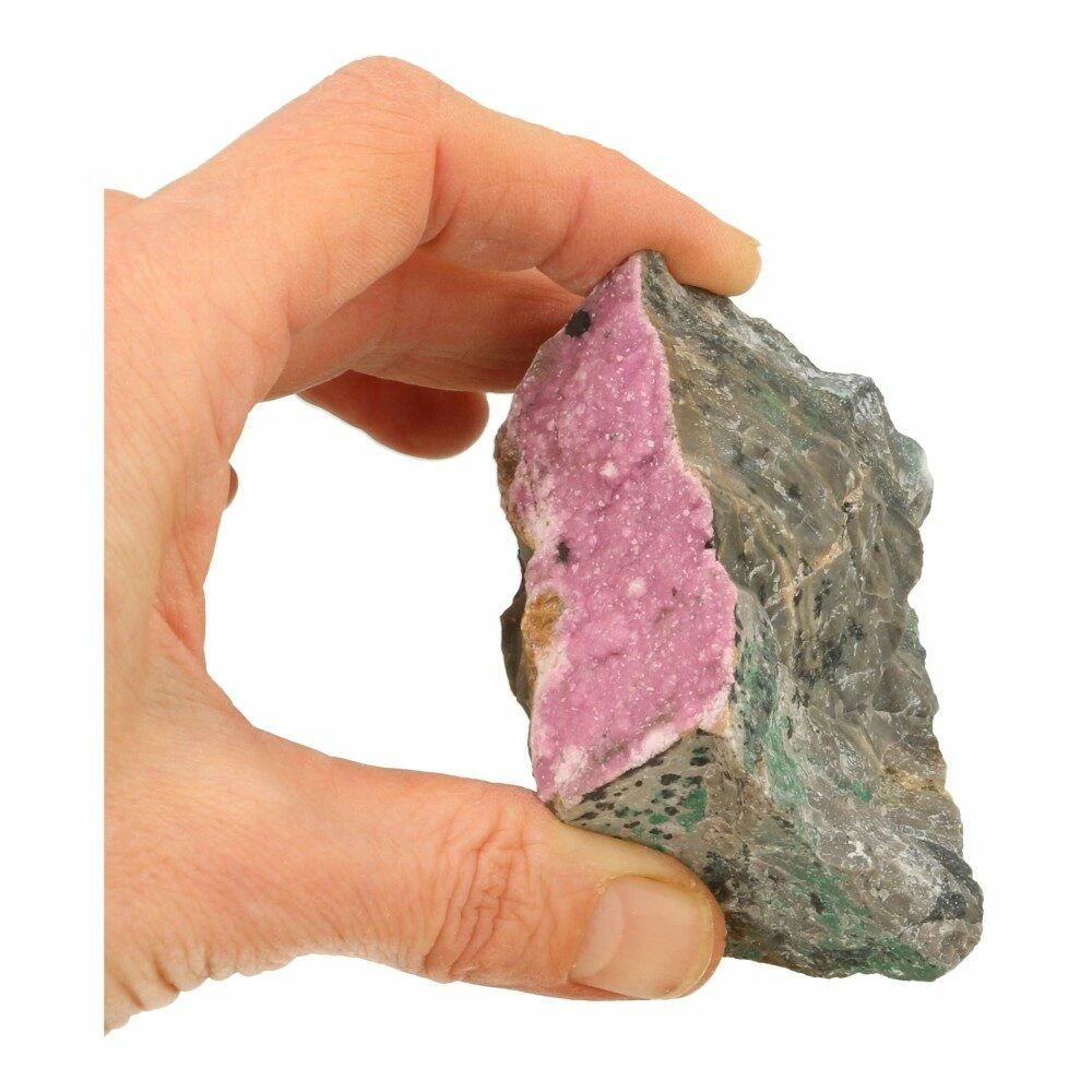 Cobalto calciet is een unieke variant van calciet die zijn prachtige roze kleur dankt aan de aanwezigheid van kobalt. In het Engels heet deze steen ‘salrose’ en het mineraal wordt voornamelijk in Democratische Republiek Congo en Marokko gevonden. De naam Salrose komt van het Franse Salt Rose. Het is een overkoepelende naam voor kobalthoudende dolomiet of calciet. Het komt vaak voor in combinatie met malachiet.