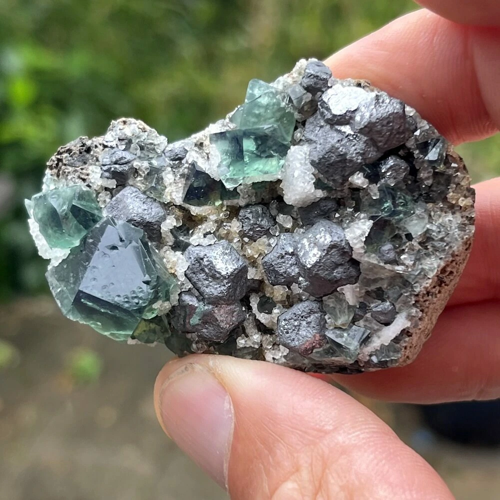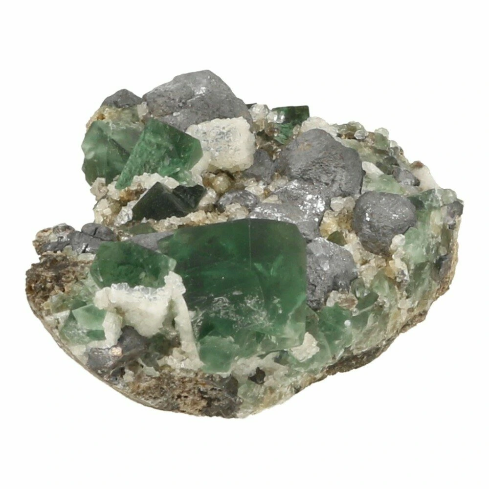 Prachtige groene ruwe fluoriet kristallen op matrix uit Engeland. Naast de uitzonderlijke kwaliteit van de fluorietkristallen zijn deze daglicht actief. Dat betekent dat ze onder invloed van daglicht een blauwe gloed krijgen. En op UV-licht reageren ze helemaal spectaculair. Deze fluoriet komt uit de Druzy Dreams Pocket van de Rogerly Mine in Frosterley, Weardale. De afmeting van dit fraaie stuk is ongeveer 63 x 42mm en 26mm hoog. Over de fluoriet kristallen zijn gedeeltelijk kwartskristallen en galeniet gevormd, kenmerkend voor deze pocket. Bijzonder en zeldzaam materiaal, direct van de mijn in Engeland. Je ontvangt het ruwe daglichtfluoriet cluster van de foto.