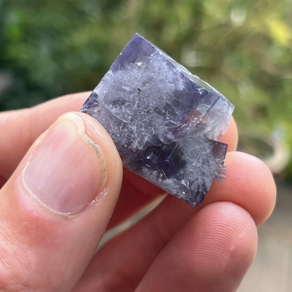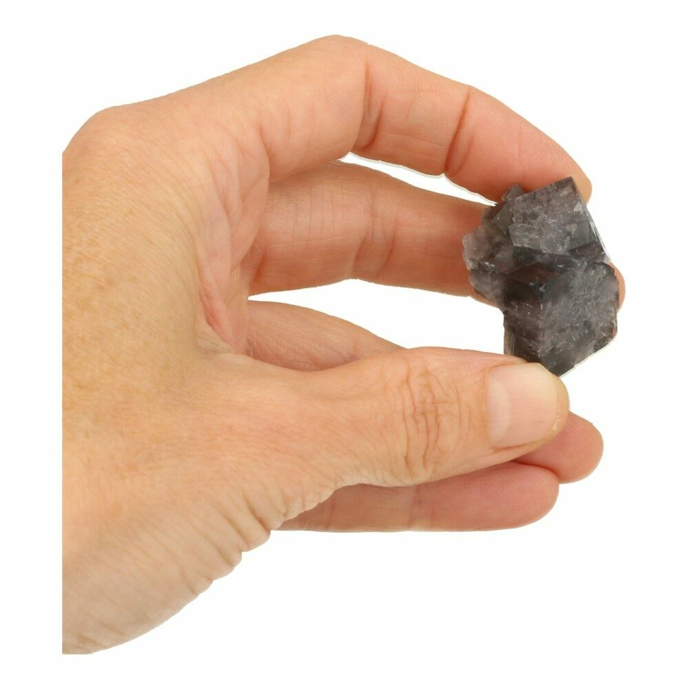 Prachtige grijs-paarse ruwe fluoriet kristallen uit Engeland. Naast de uitzonderlijke kwaliteit van de fluorietkristallen zijn deze daglicht actief. Dat betekent dat ze onder invloed van daglicht een blauwe gloed krijgen. En op UV-licht reageren ze helemaal spectaculair. Deze fluoriet komt uit de Purple Rain Pocket van de Lady Annabella Mine in Eastgate, Weardale, Engeland. De afmeting van dit fraaie stuk is ongeveer 31x22x21mm. Van een afstandje lijkt de fluoriet bijna zwart, vandichtbij zie je dat het transparant grijs is. En buiten met een donkerblauwe gloed. Bijzonder en zeldzaam materiaal, direct van de mijn in Engeland. Je ontvangt het ruwe daglichtfluoriet cluster van de foto.