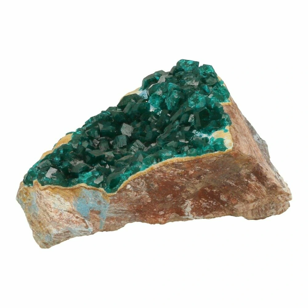 Fraai A-kwaliteit cluster heldergroene dioptaas ruw op matrix met kwarts. Een bijzonder fraai stuk dioptaas met grote kristallen die mooi afsteken op het bruine moedergesteente. De afmeting van dit stuk dioptaas is 10,5cm lang, 8cm breed en ruim 4,5cm hoog en dit fraaie stuk komt uit Congo. Unieke dioptaas ruw van hoge kwaliteit! De energie is helder en transformerend, ze nodigt je uit om het licht in de situatie te zien en daarop te focussen, zodat je kunt transformeren en groeien. Een mooie aanwezigheid voor spirituele groei en het transformeren naar een nieuwe versie van jezelf.
